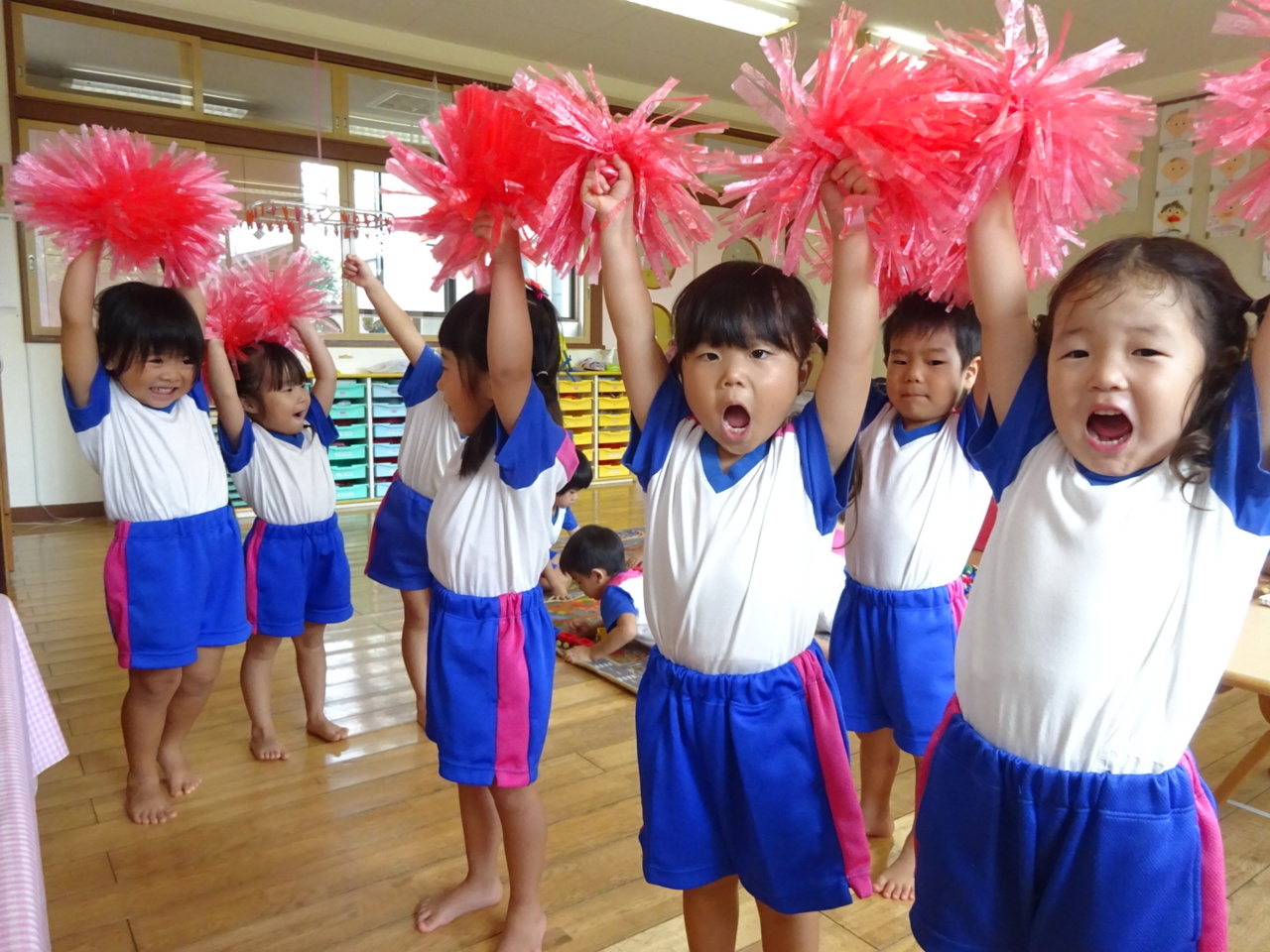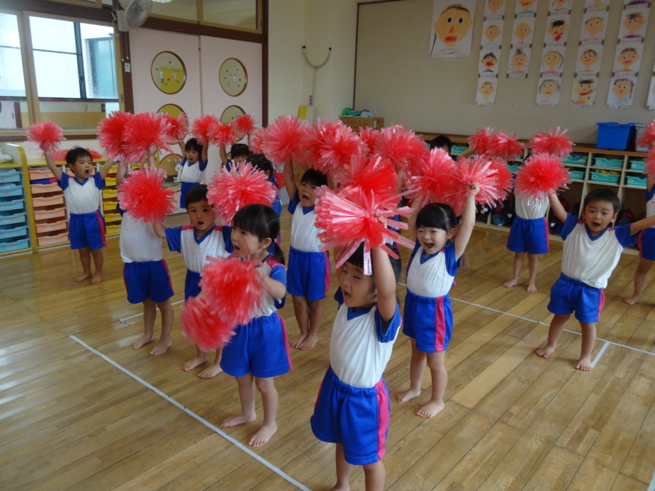 はじめてポンポンを持って練習をしました!