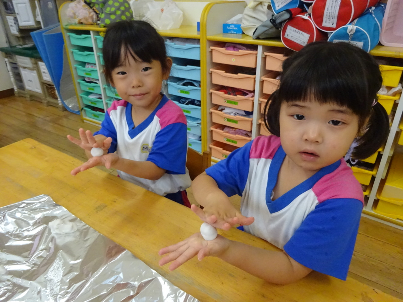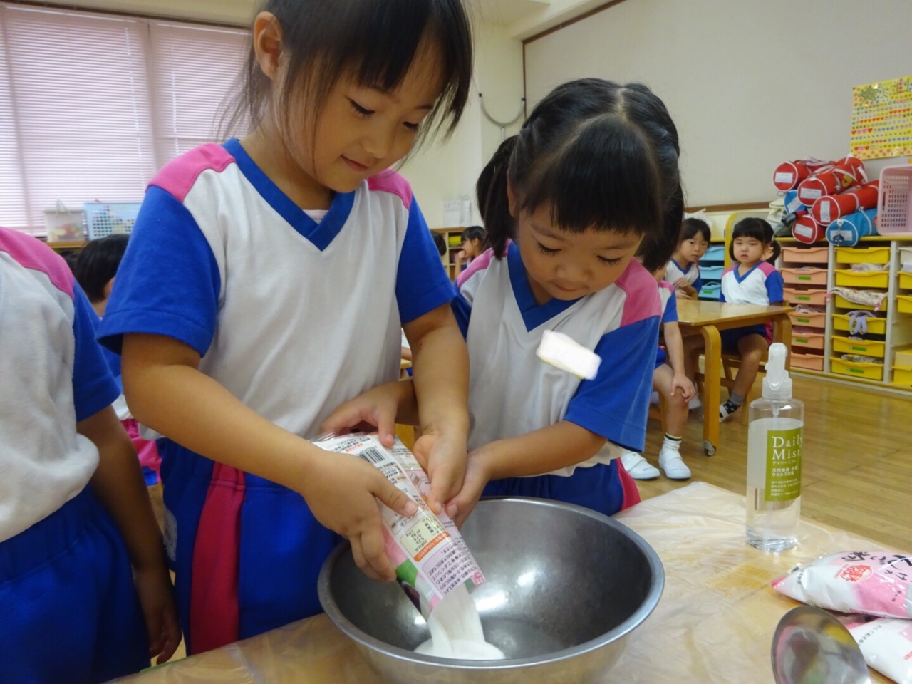 今日は、たのしみにしていたおだんごパーティー(^_^) 粉を入れるお手伝い♪