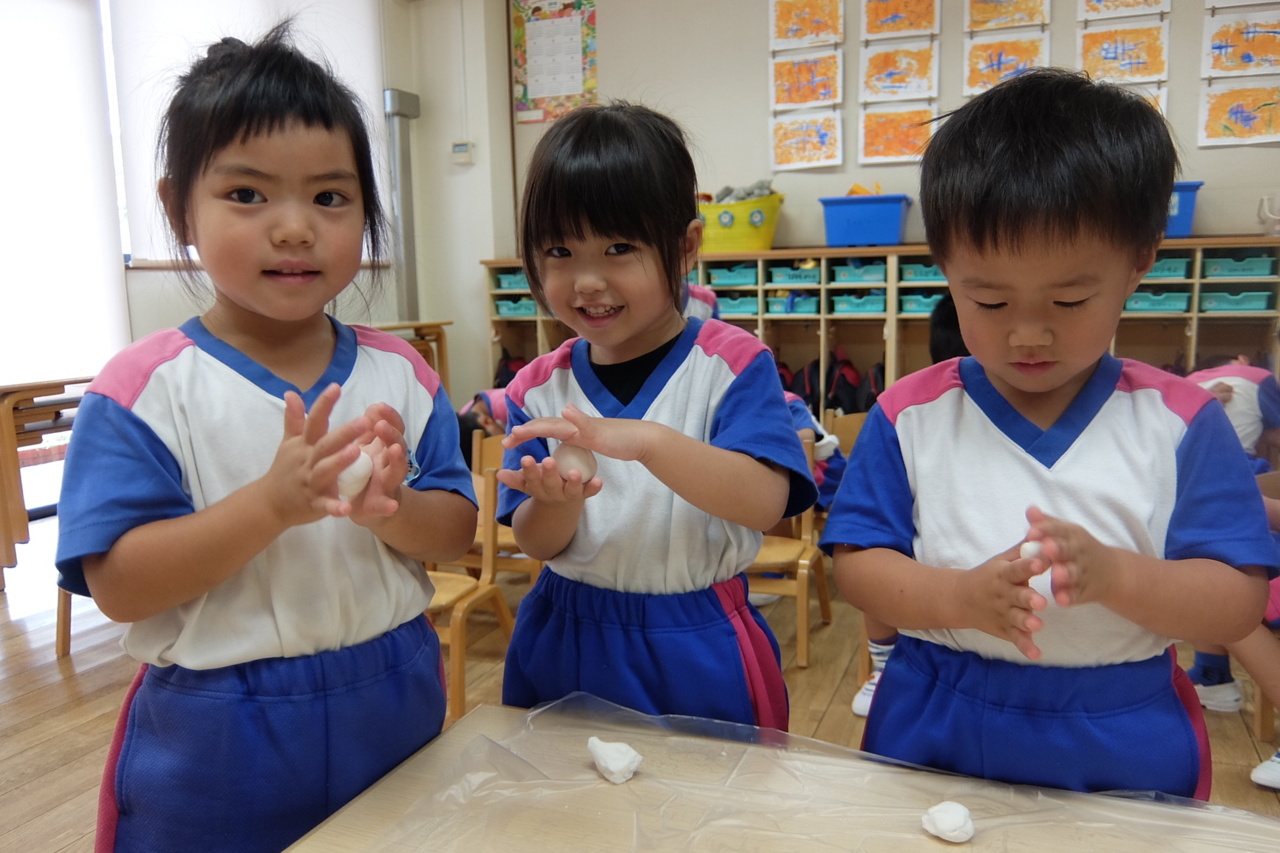 みんなでコロコロお団子を丸めています☆ 「おいしいおだんごになあ~れ!」