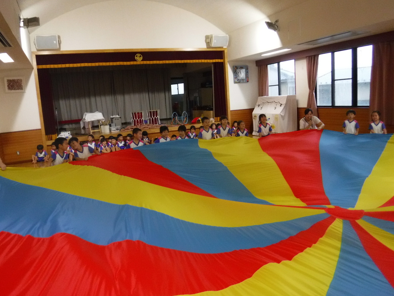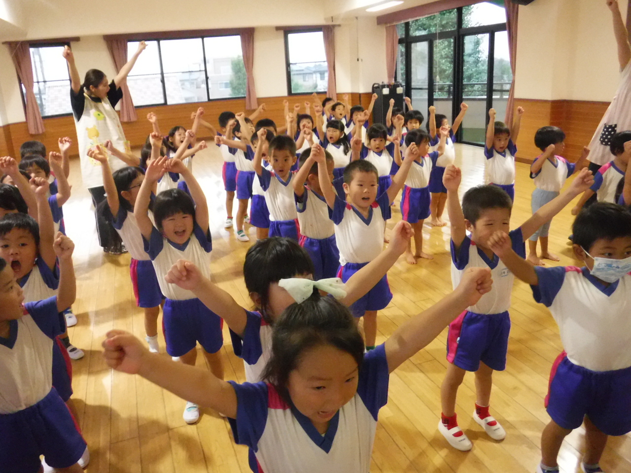 最初はみんなで‘にじのむこうに’を踊りました!
