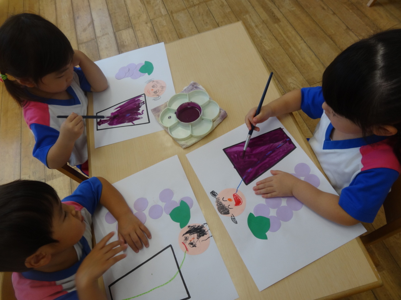 筆で上手に絵の具を塗ります♪