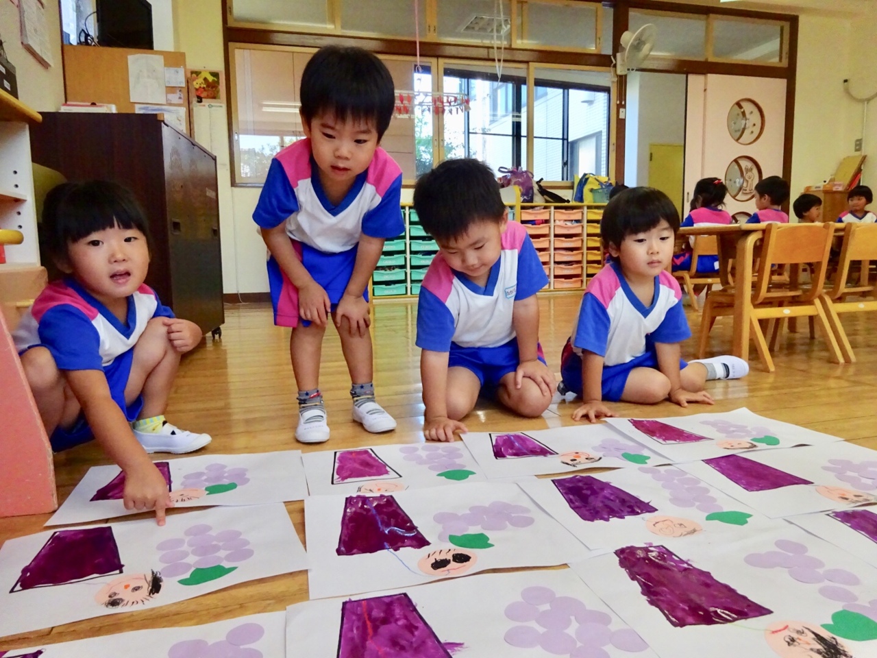 今月から歌いはじめた『やきいもグーチーパー』です!歌の最後にはみんな楽しみなジャンケンをします(^O^)