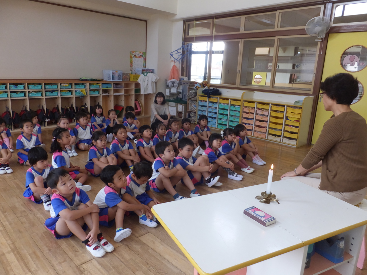 たんぽぽ組はお話の世界に包まれ、みんな静かに聞き入っていました(^O^)