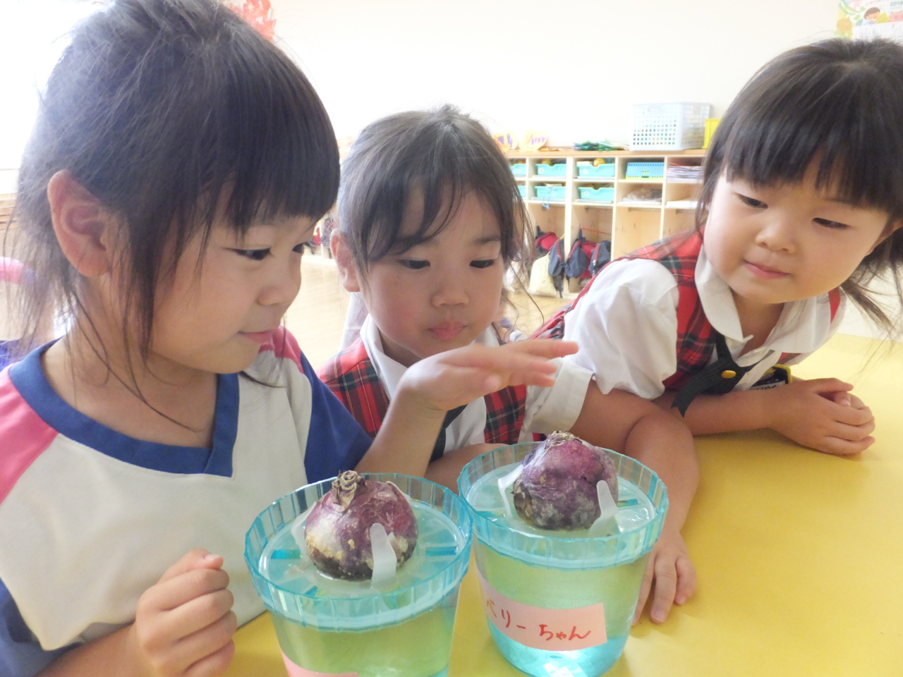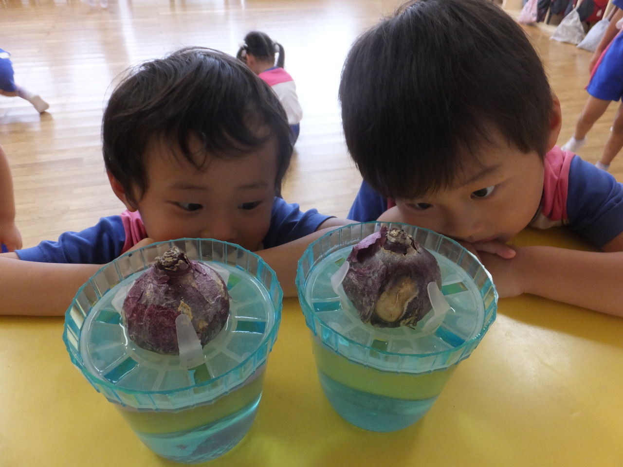 「なんだか、ねっこ大きくなったよね!?」 じーっと見つめる子どもたち・・・ 大きく成長して花が咲くのが楽しみですね(#^.^#)!