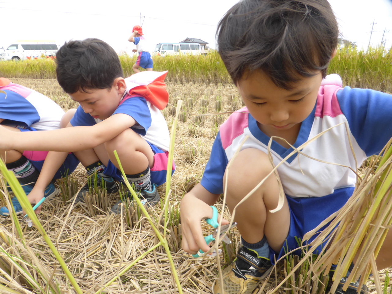 「たくさん!しゅうかくできました☆」 稲刈りの後のお楽しみ!! 「よ~し、たくさんあそぶぞ~!!」