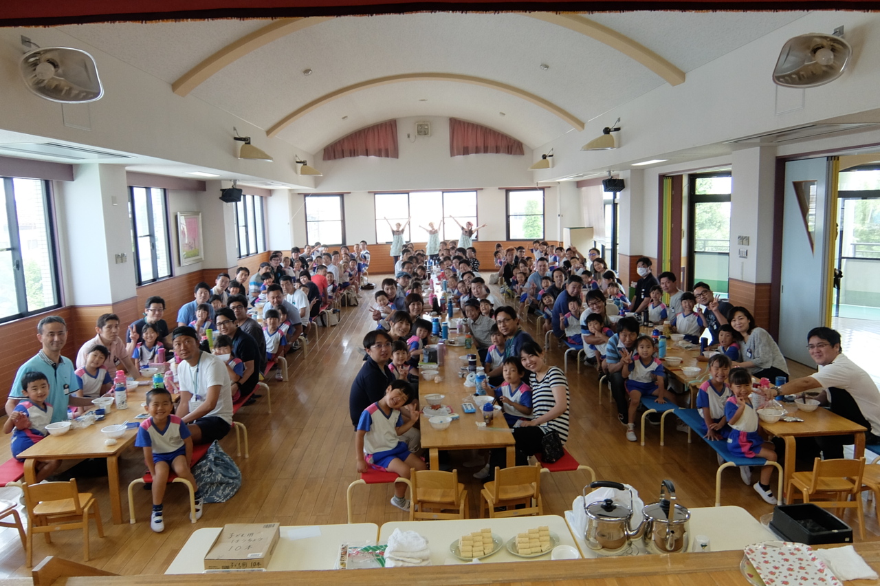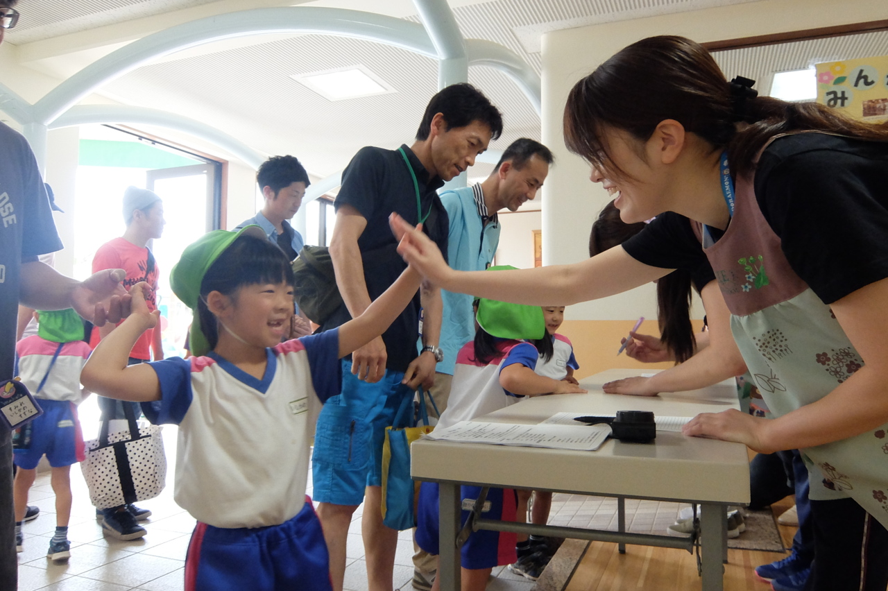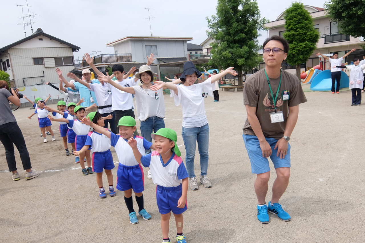 今日は年長さんの親子で遊ぼうが行われました(^_^)/ 「おはようございます!」 担任の先生と元気にタッチ☆