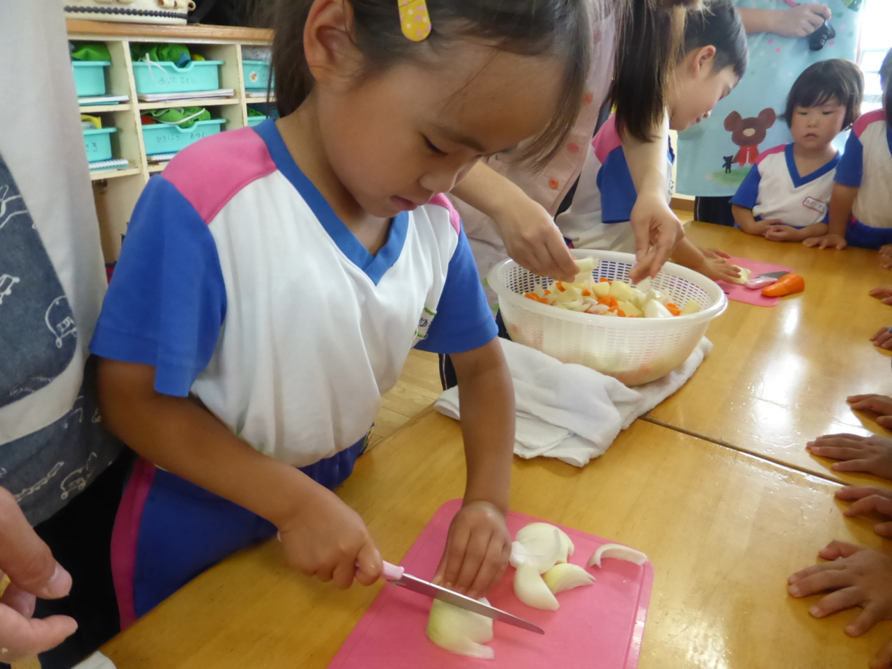 今日はカレーパーティでした。 カレーで使う材料は年長さんが頑張って切ってくれました(*^。^*)