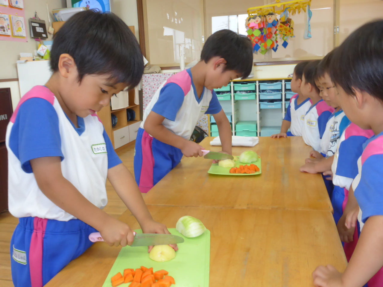 野菜切り、よく頑張りましたね!皆で力を合わせて作ったカレーは本当に美味しかったです!