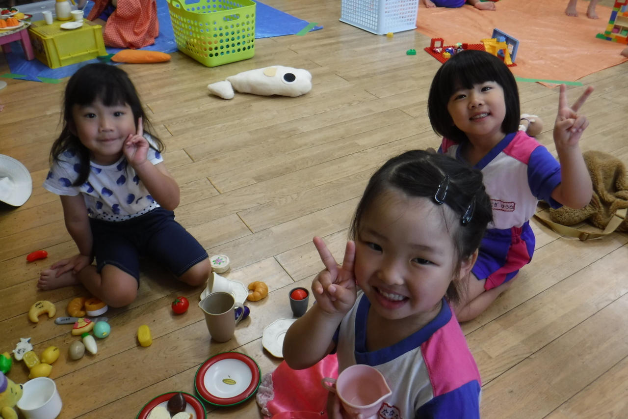 雨の日はお部屋でのんびり遊んでいます! みんなでおままごとです(^^♪