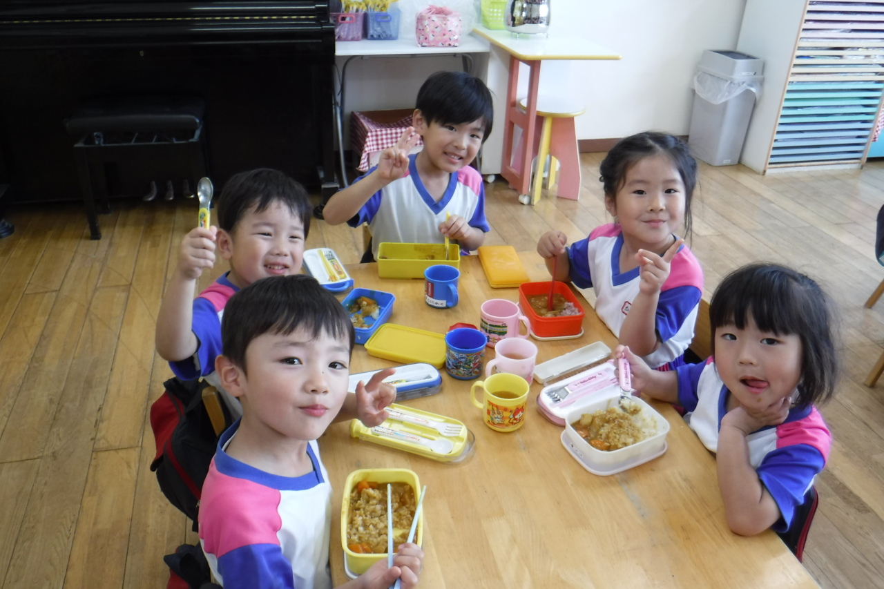 野菜を切ってくれた年長さんと一緒に、カレーを食べました!