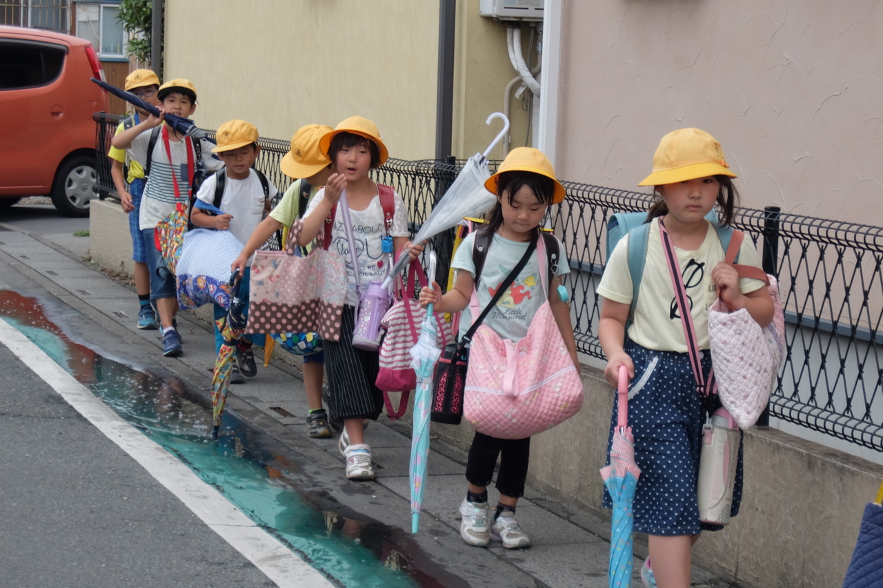 一列に並び、しっかりと下校してくる成田小チームです。 毎日暑いので、しっかり水分補給して安全に帰ってきてくださいね(*^_^*)