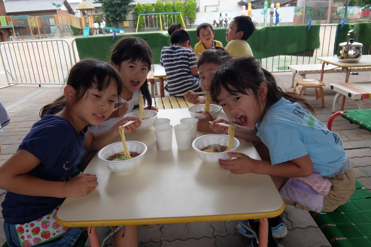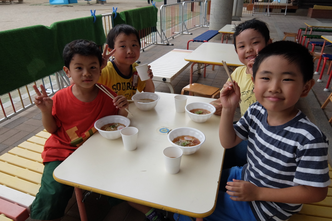 みんなに人気の「ラーメン」 この日は、かい先生がバス発着所で作ってくれました☆