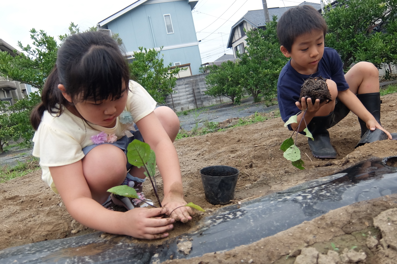 30本以上の苗をあっという間に植えた子供達がとても逞しく、大きく見えました。 夏休みに収穫に行きましょうね(*^_^*)