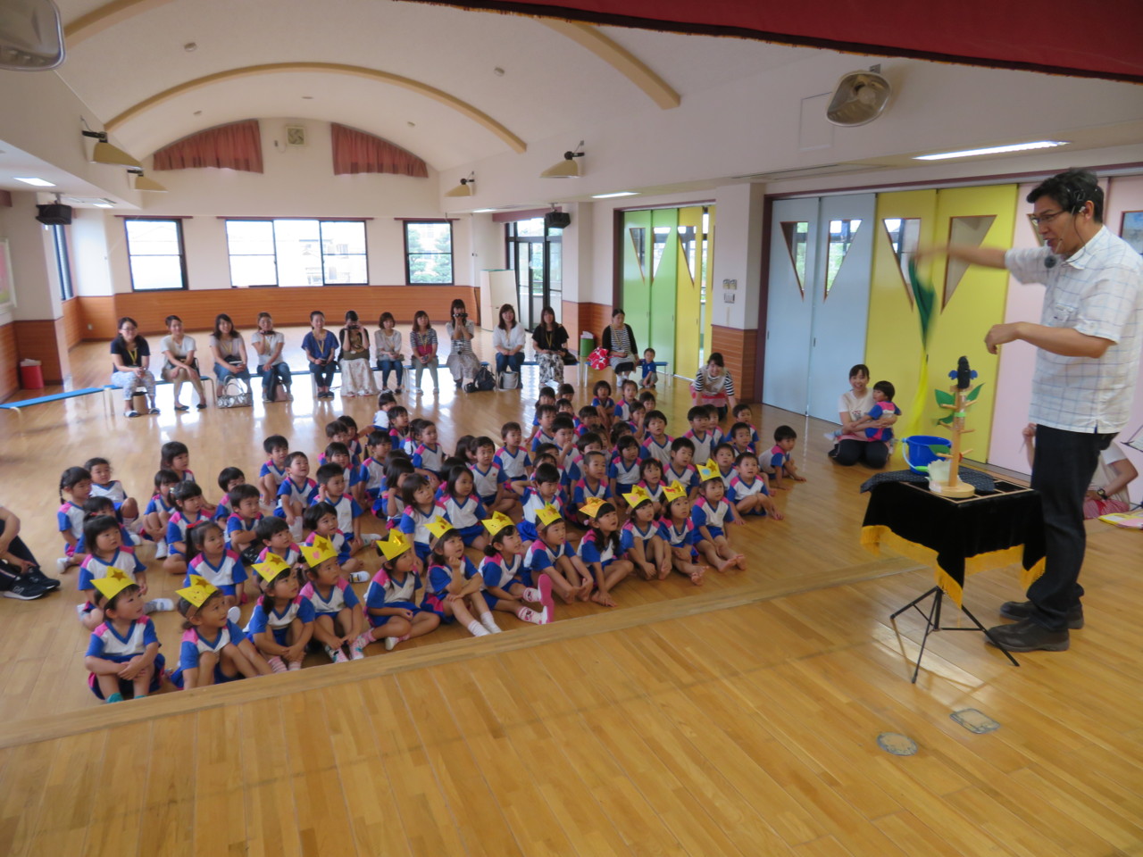 園長先生からマジックのプレゼントがありました! マジクリマジクリマジクリラーンでハンカチの色が変わる!?マジックでした(^O^)