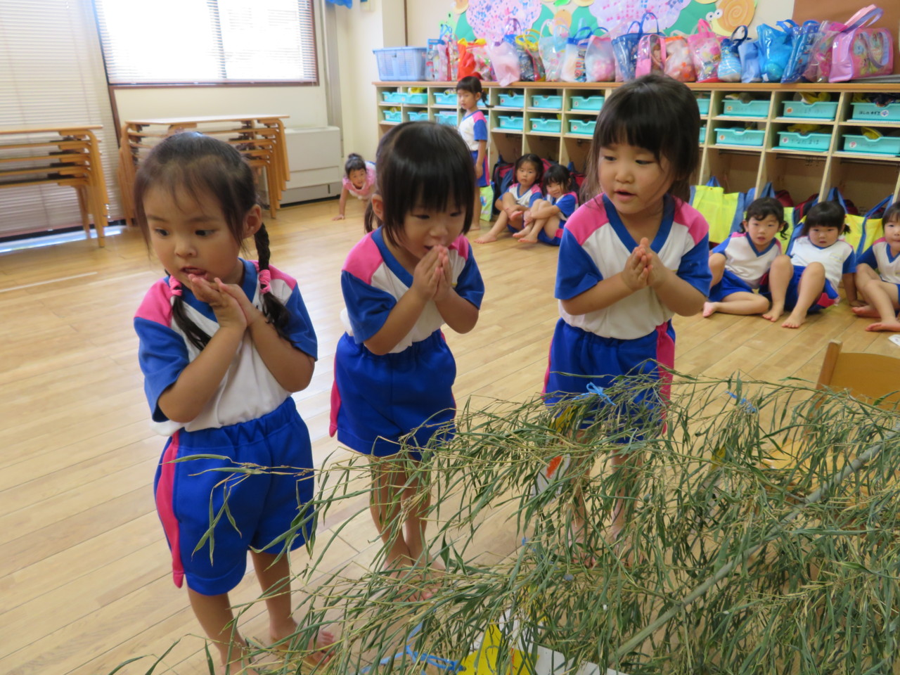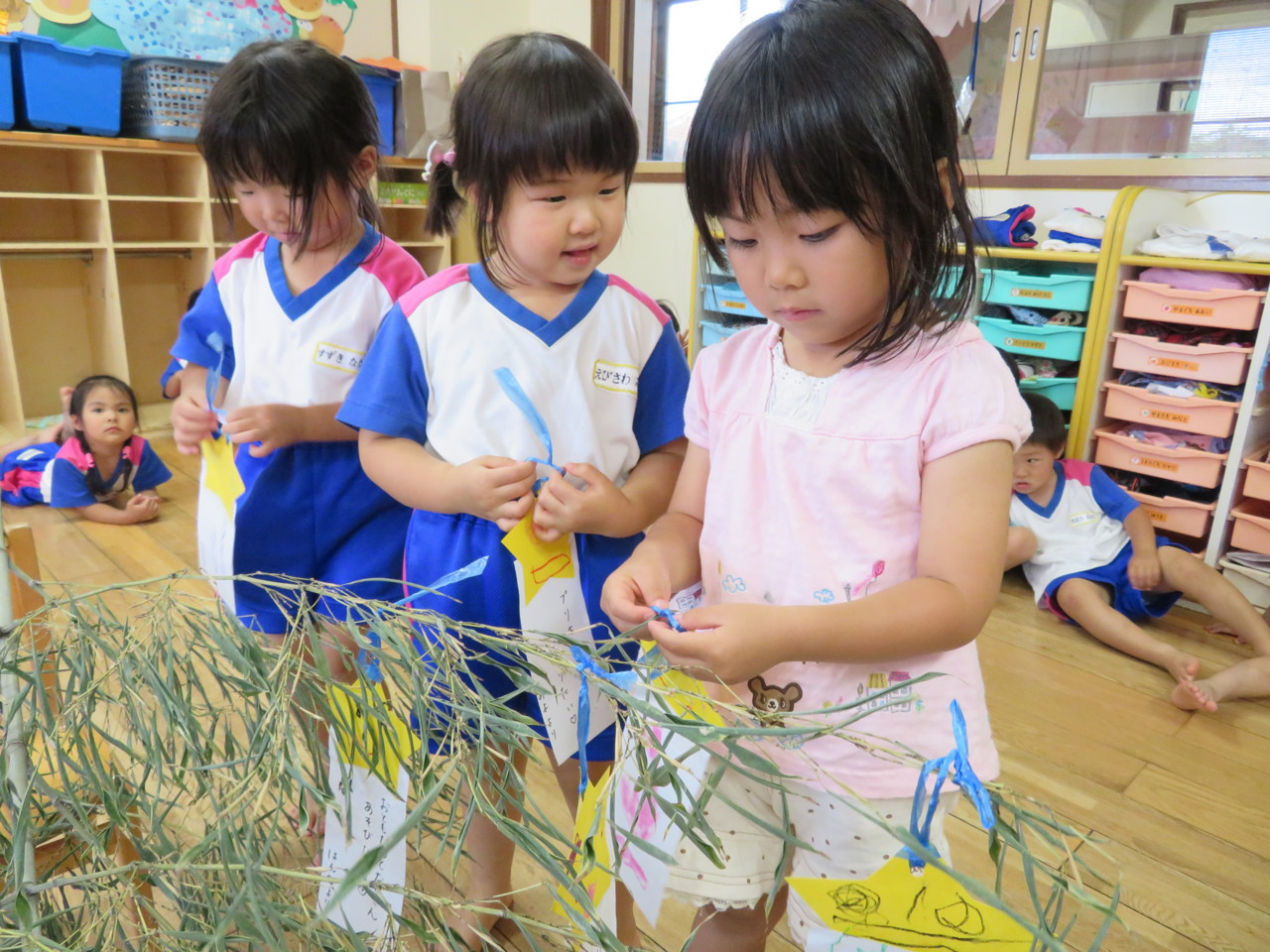 短冊に願い事を書いて、笹に飾りました。