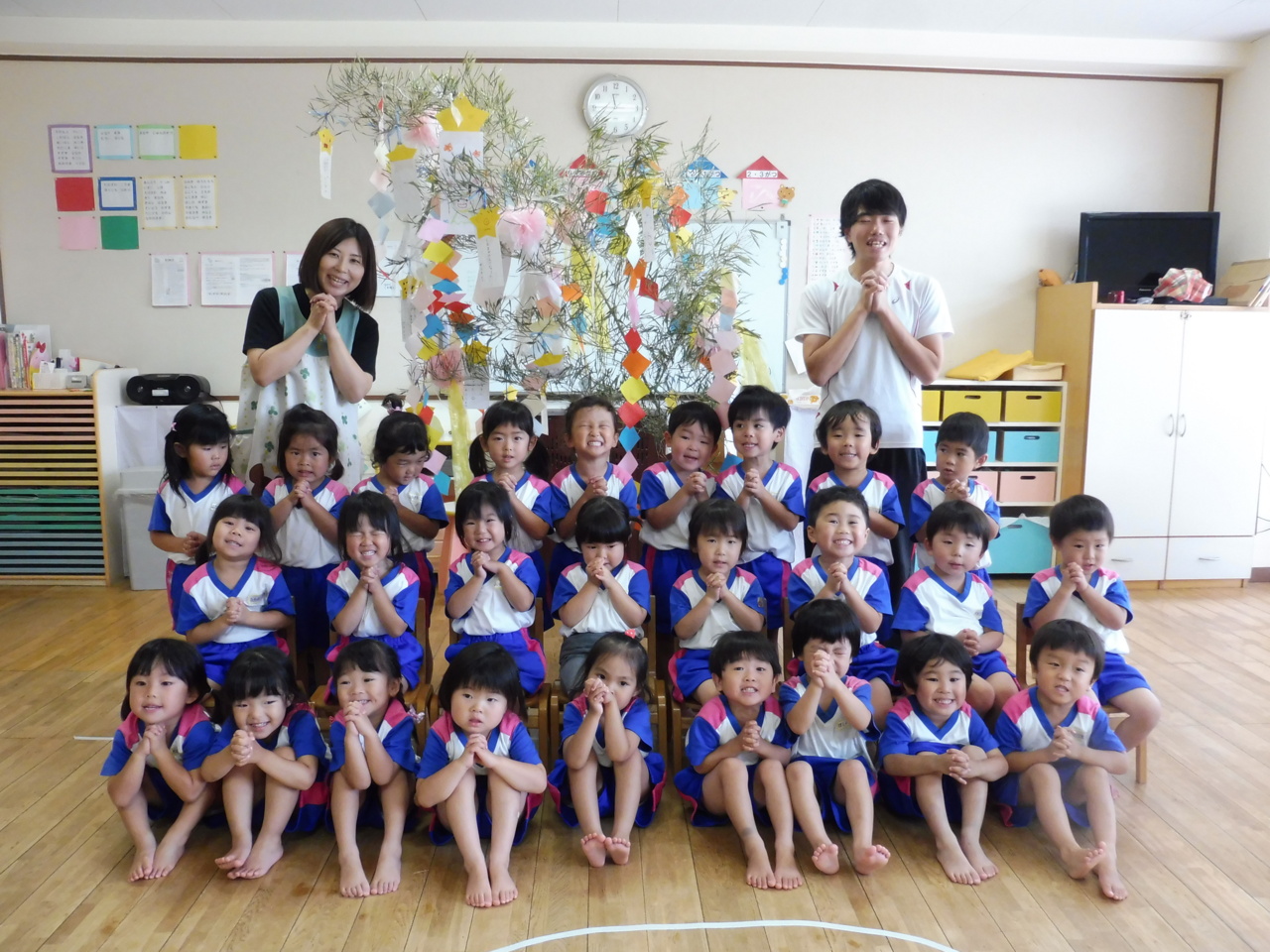 笹飾りの前でパチリ♪