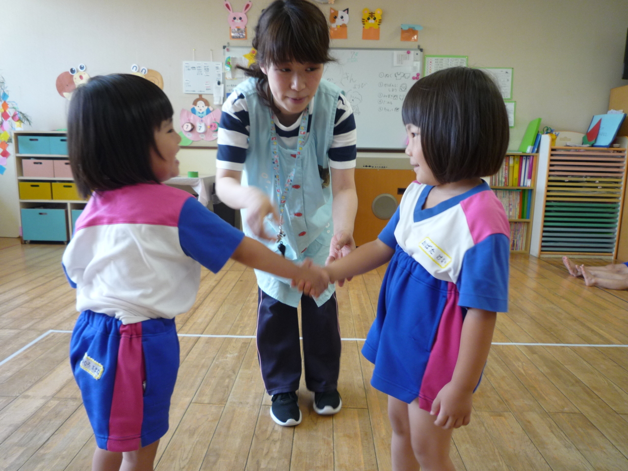 「はい、みあって、みあって~!まずは、勝負の前によろしくの握手!!」