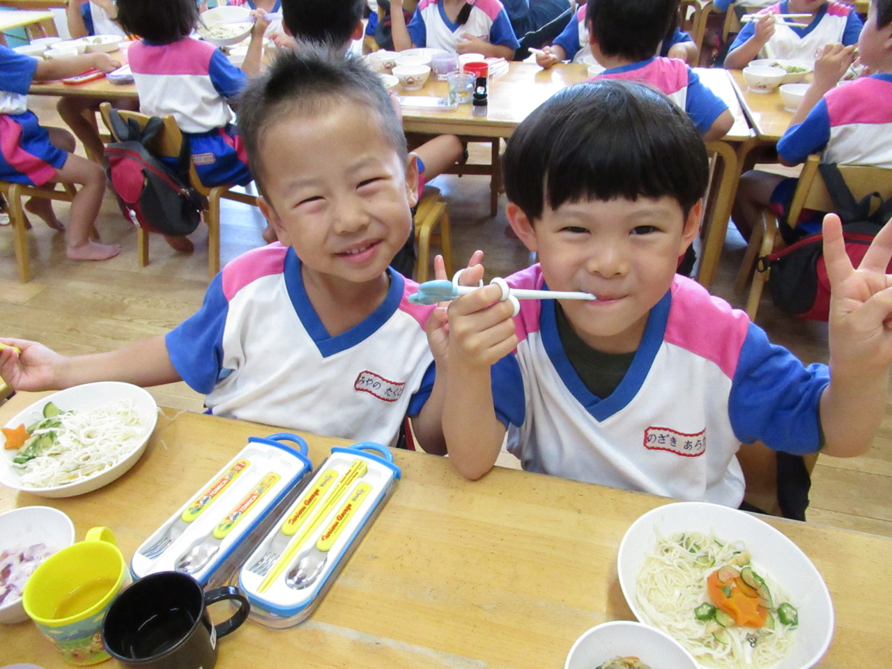 今日の給食は七夕メニュー! 星の形の野菜がたくさん入っていました。