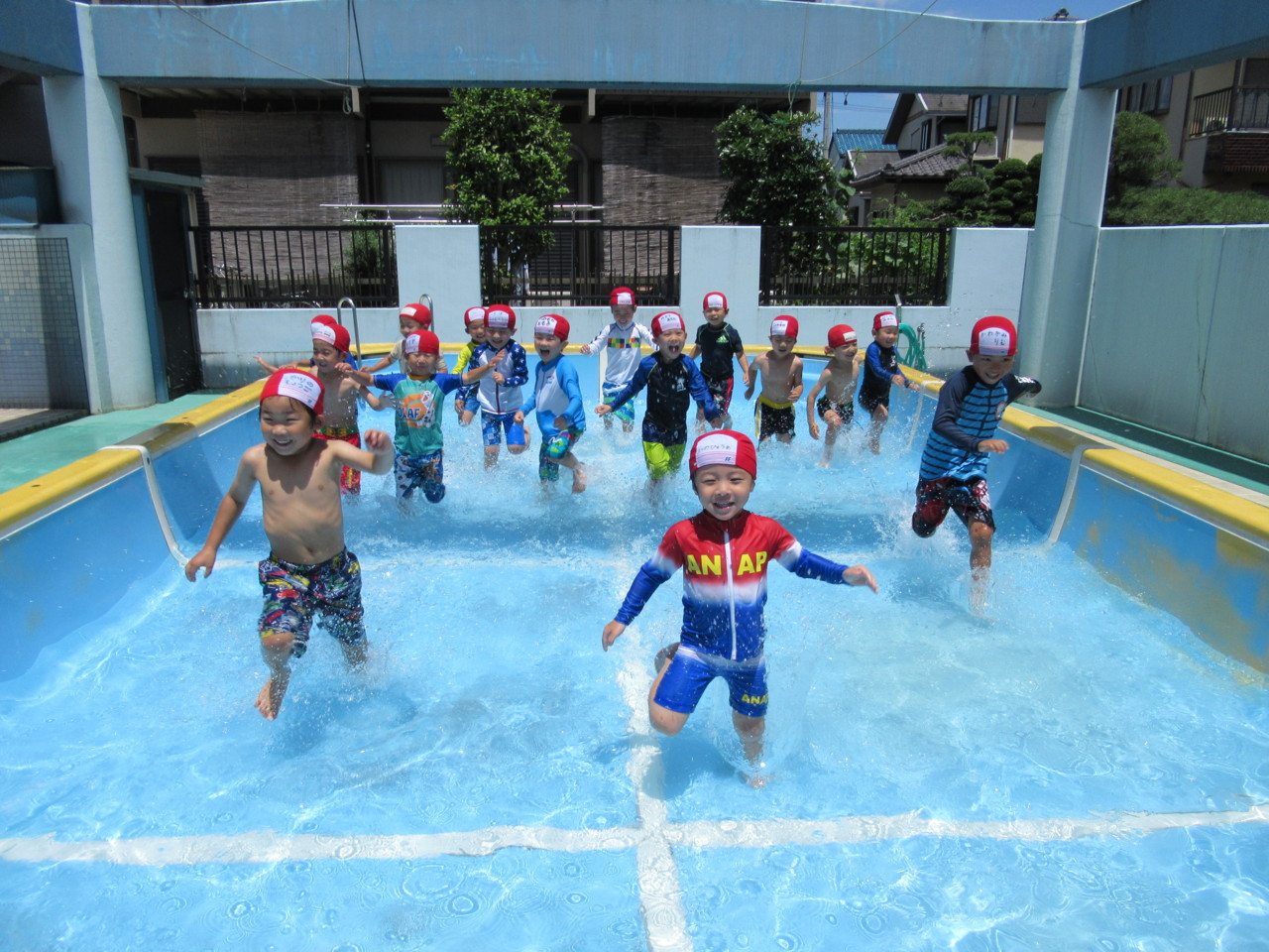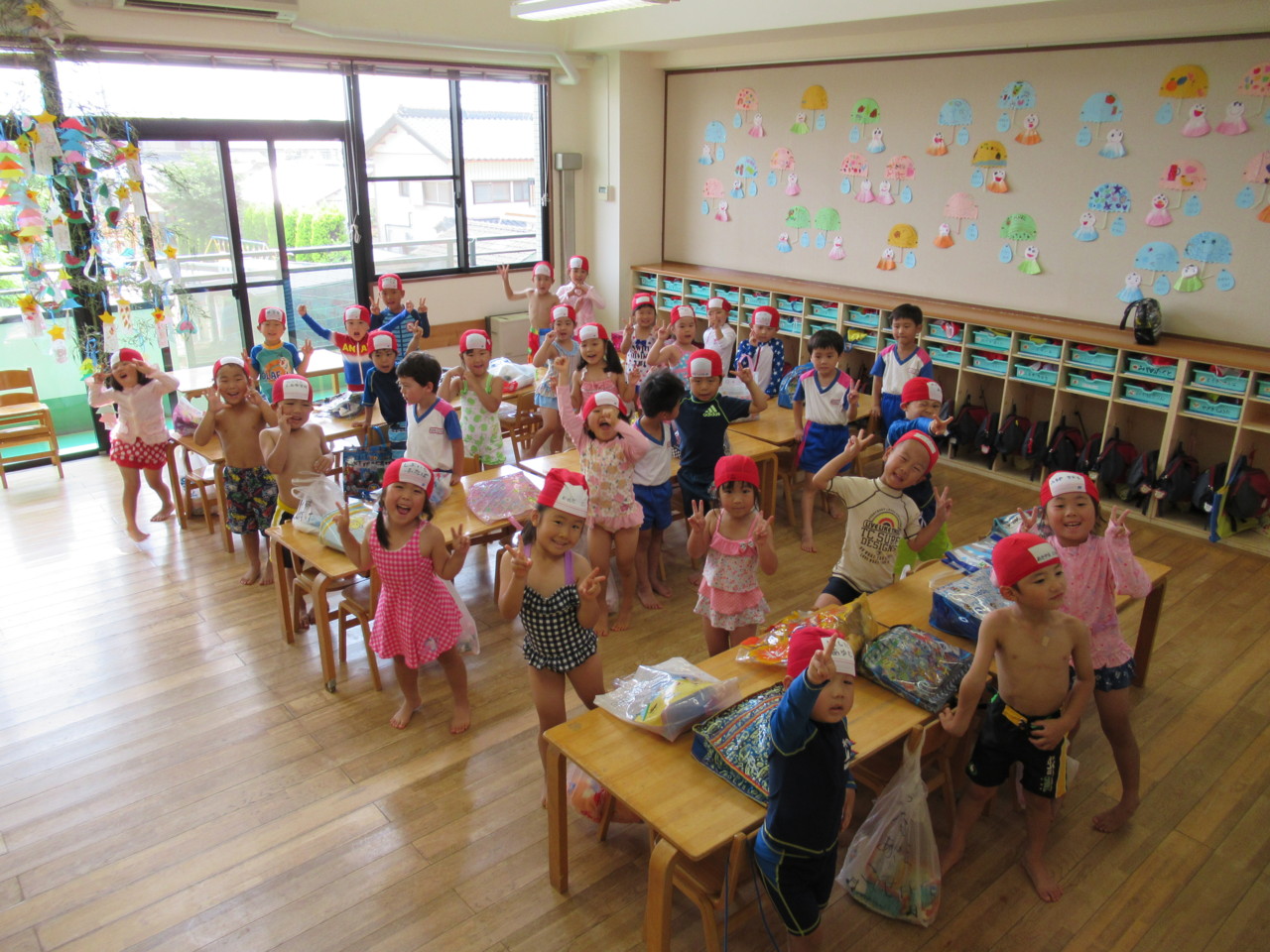 7月に入り、プールが始まりました。 自分でお着替えをして準備ばっちり☆ 「いってきまーす!」