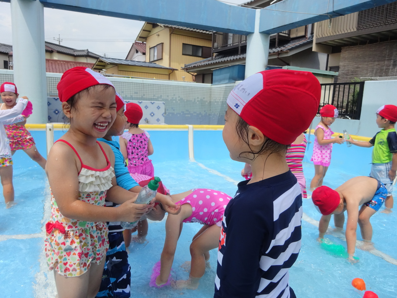 「きゃー!!」「つめたーい!!」 お友だちに水をかけ合いダイナミックに遊んでいます☆
