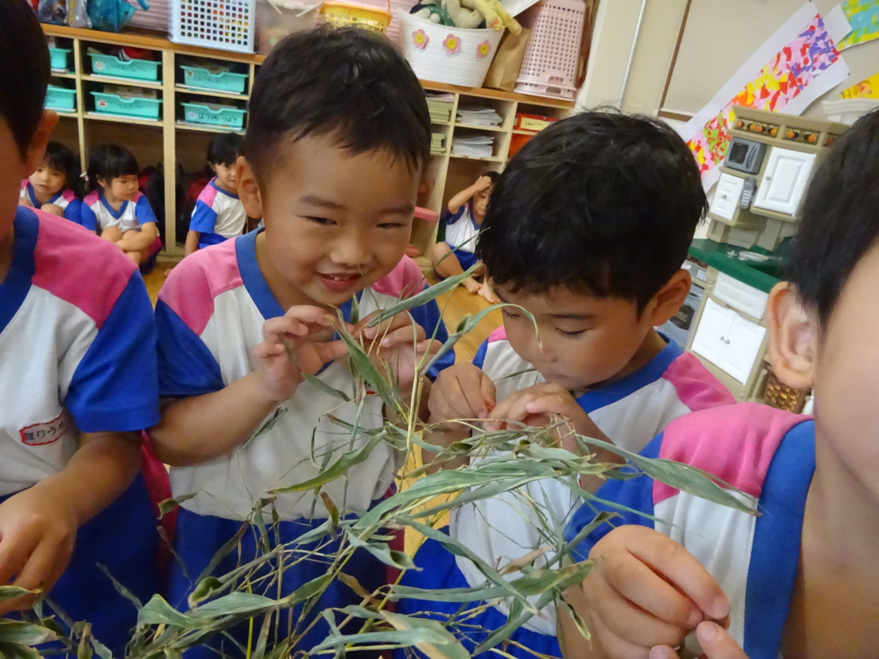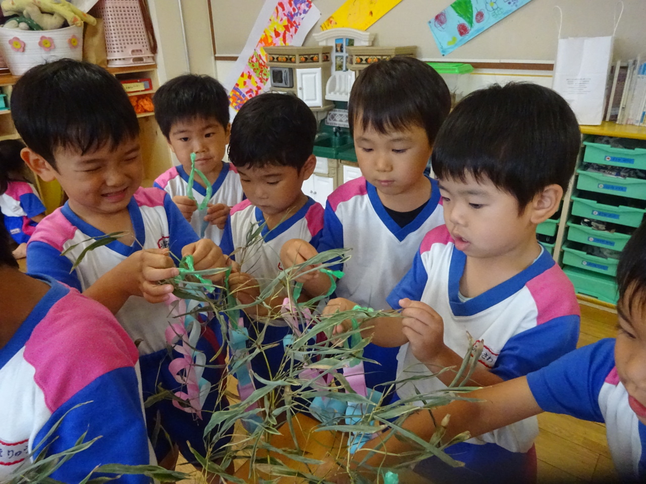 笹に飾りつけをしました☆ 「1番上につけよ~(^O^)!!」 楽しんで飾りつけをしました♪