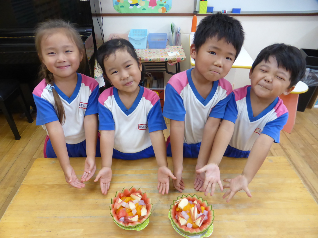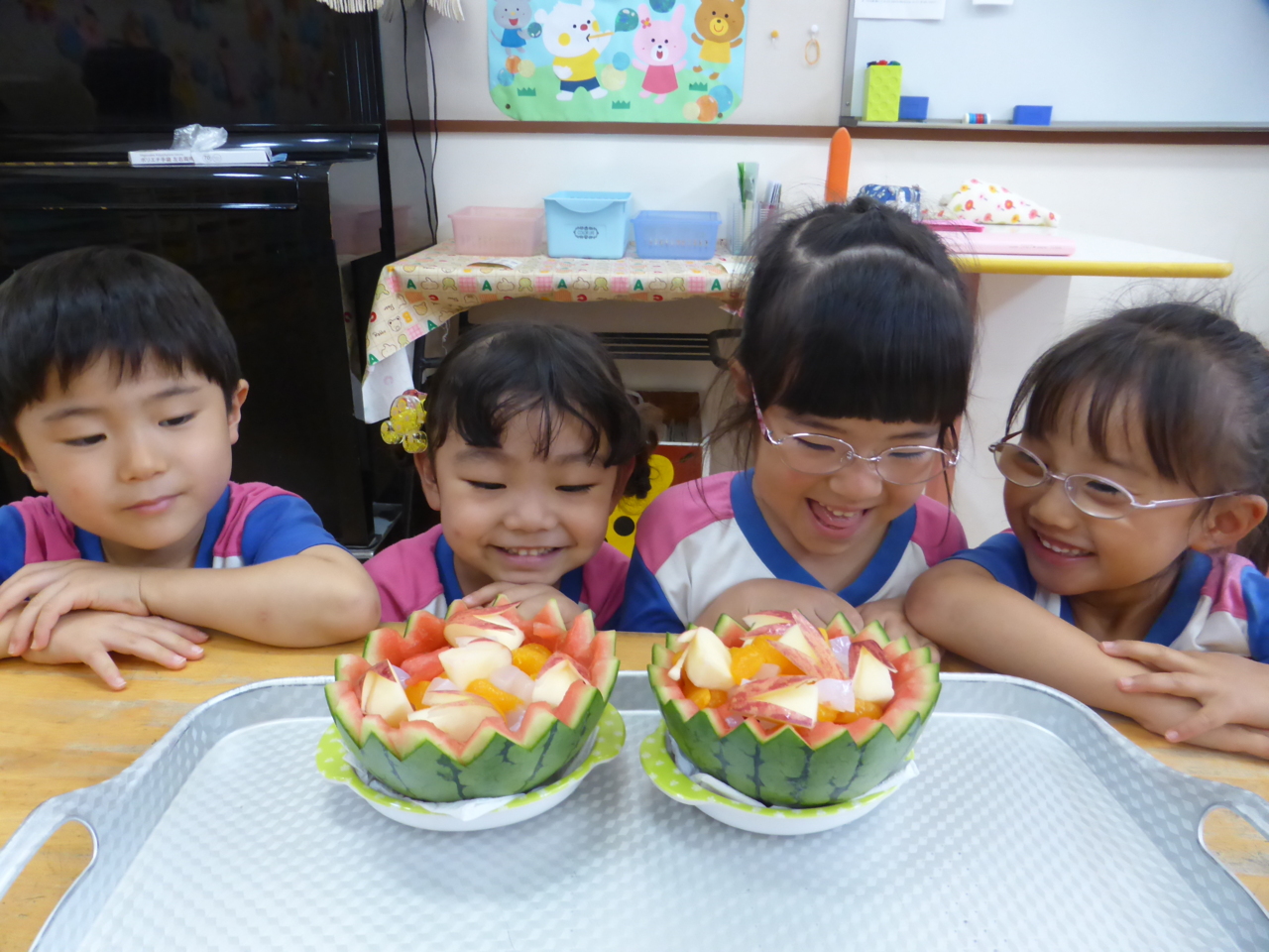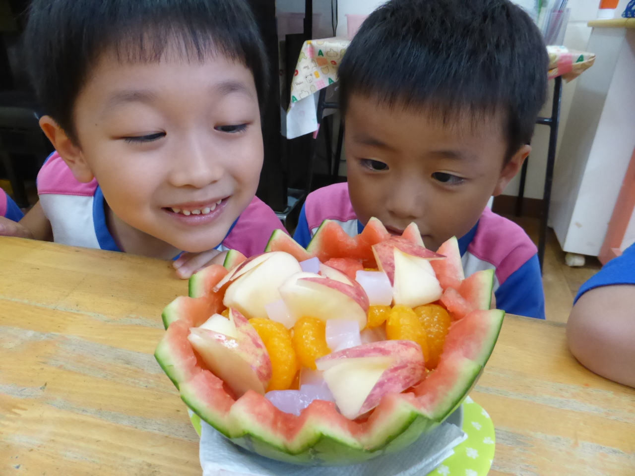 「スイカあまいよ~!!」 「くだものたくさんはいってる!!」