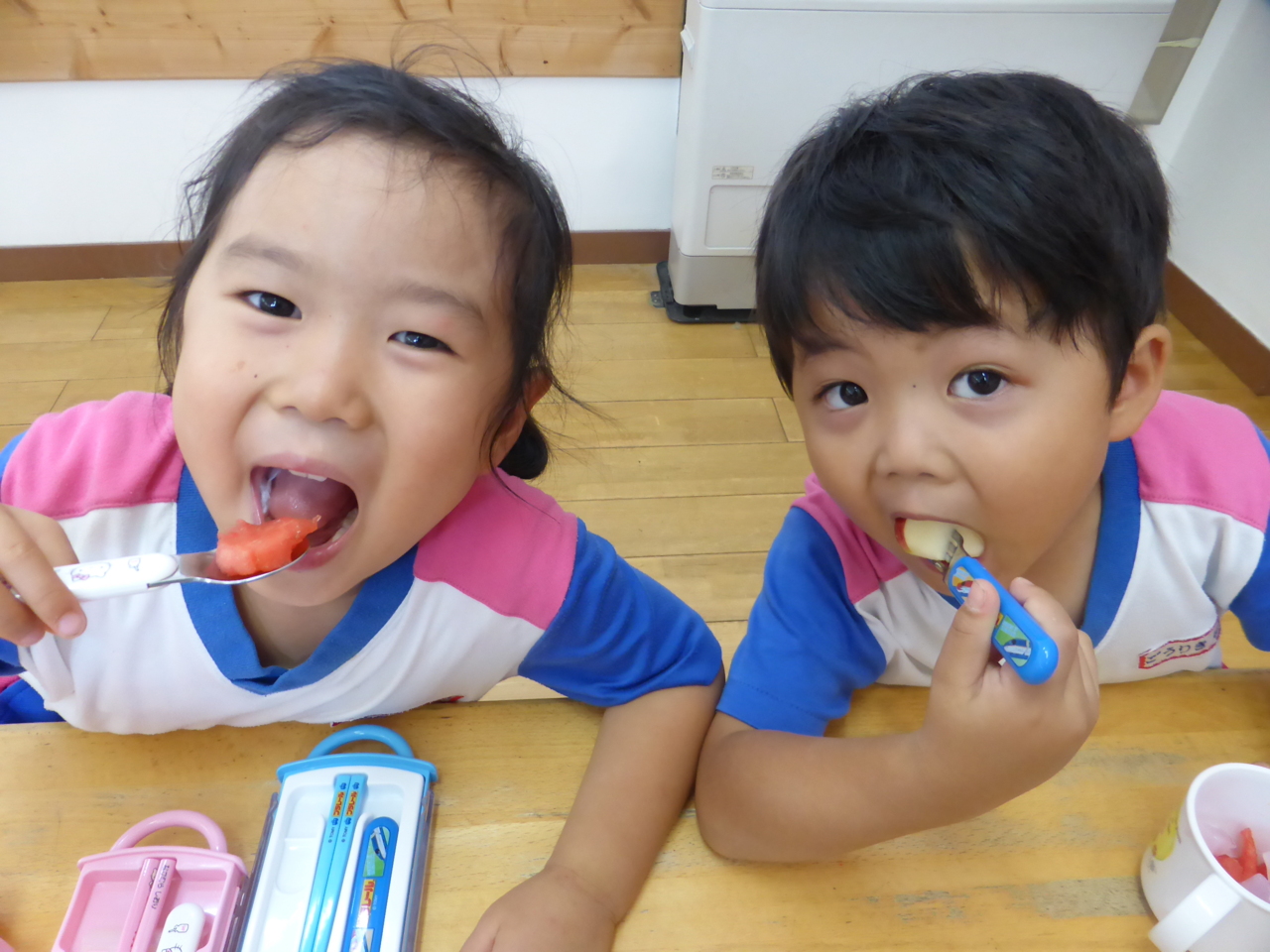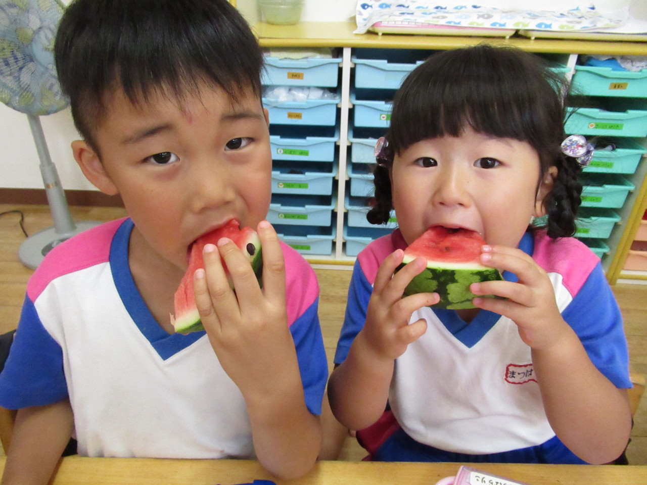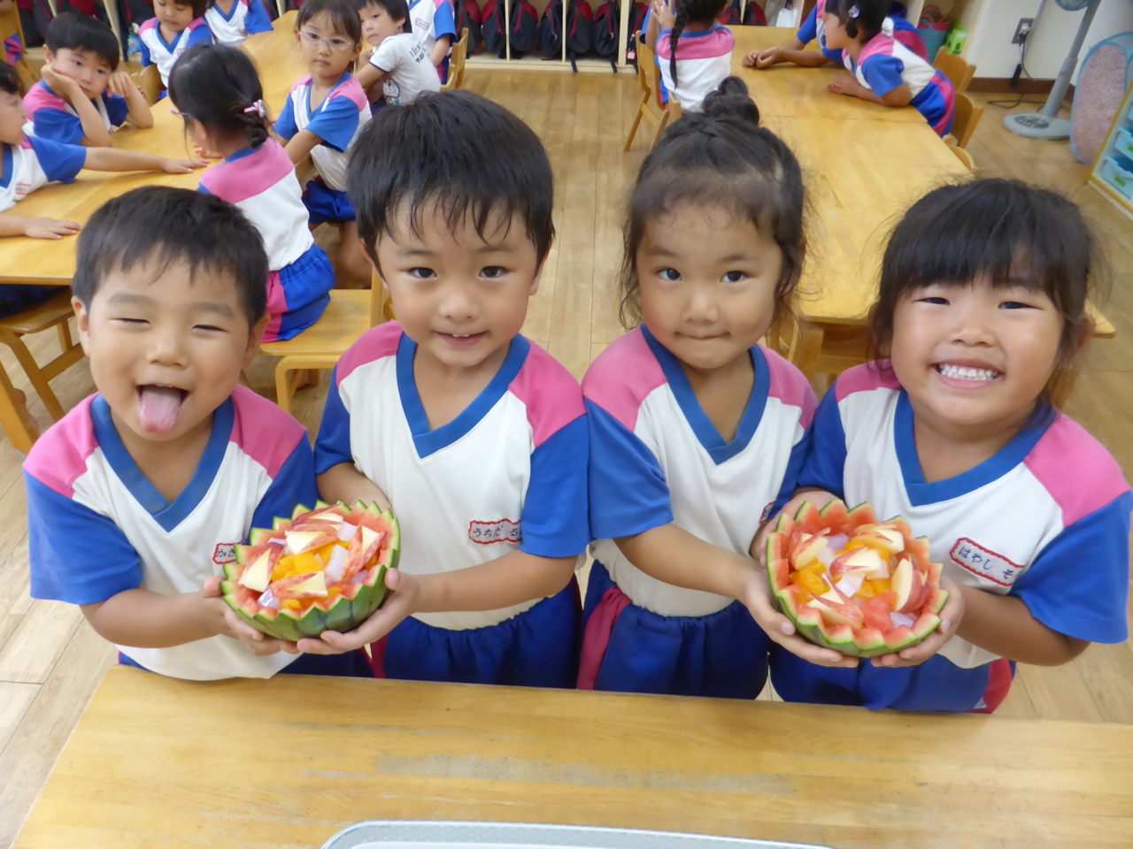 「スイカあまいよ~!!」 「くだものたくさんはいってる!!」