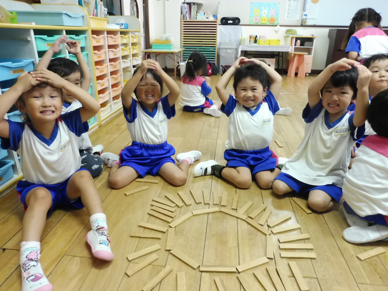 ひまわりを作った日、積み木でもひまわりを作って見せてくれました♪ ひまわりポーズヽ(*´∀`)ノ
