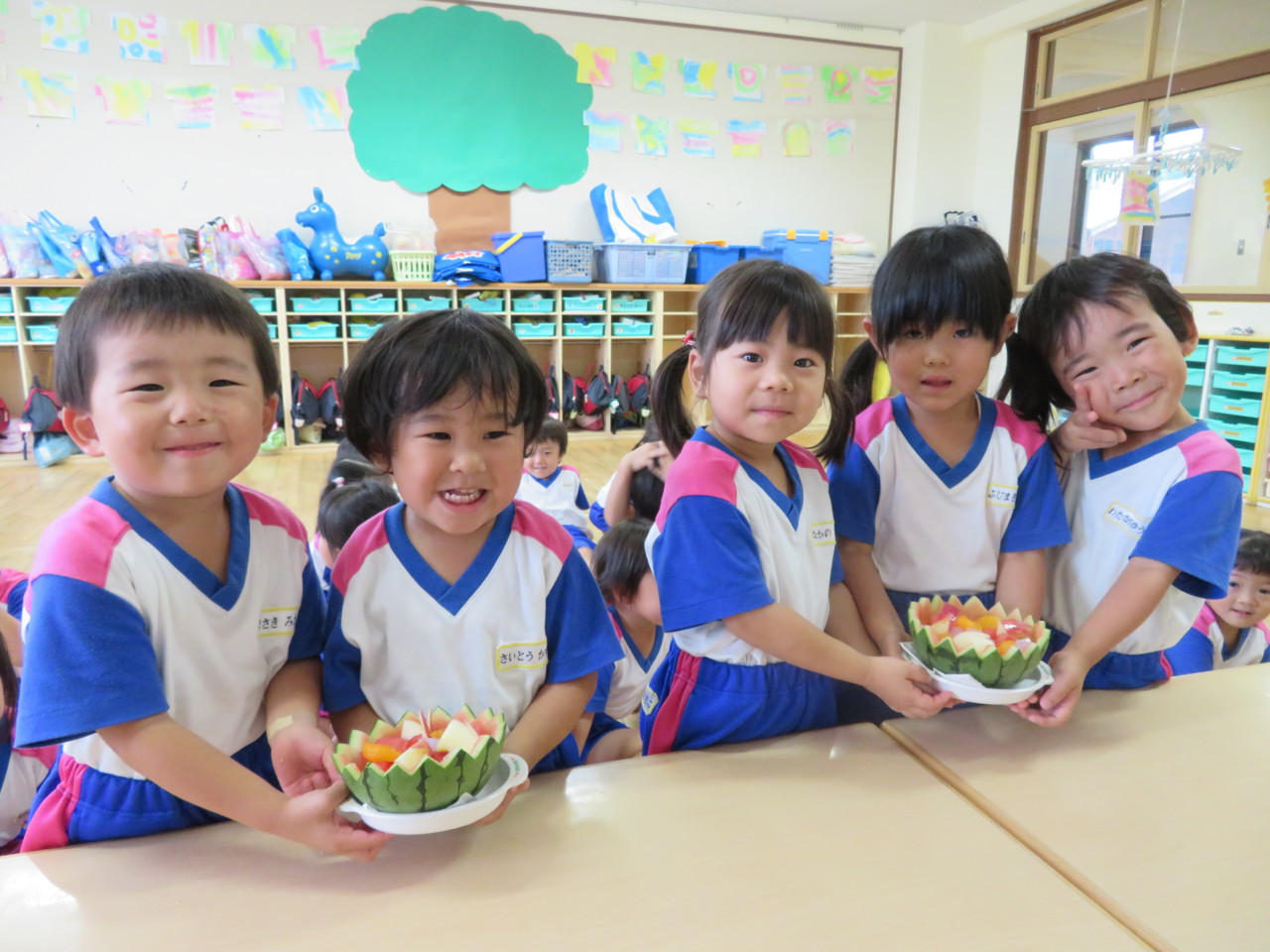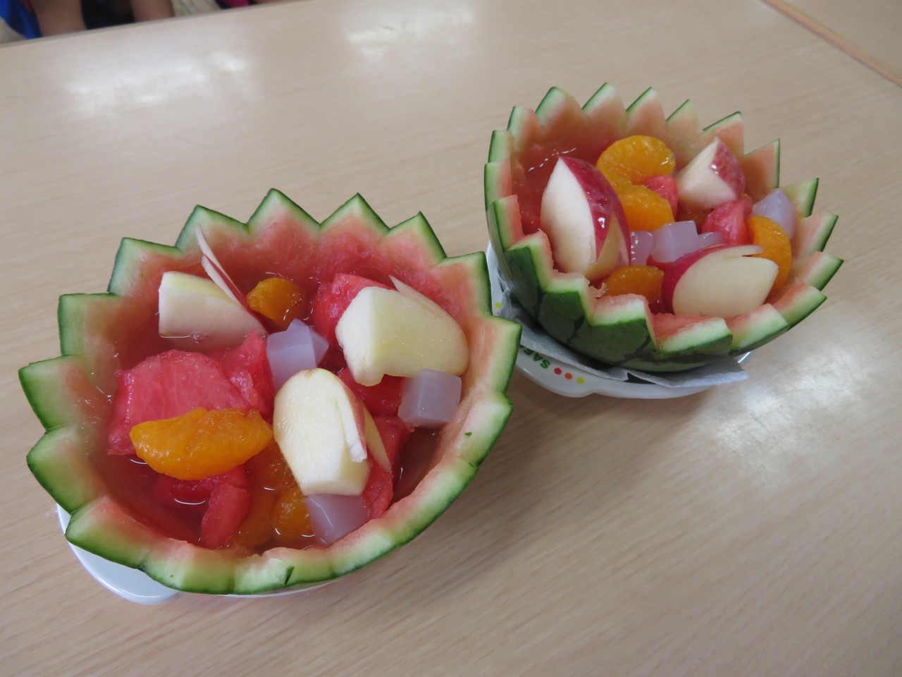 特別なお楽しみ☆フルーツポンチ☆ 畑でとれたスイカを使って、こんなにかわいいデザートをいただきました(o^^o)♪