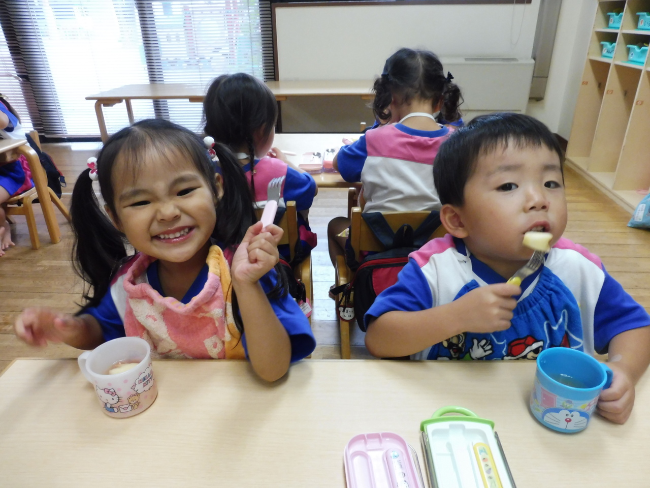 「おいしいね(^^)」 パクパク(^O^) みんなニコニコでした!