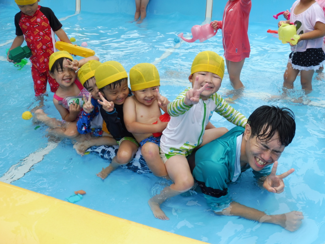 水遊び、盛り上がっています(o^^o)♪ 「かいせんせい、しゅっぱーつ!」