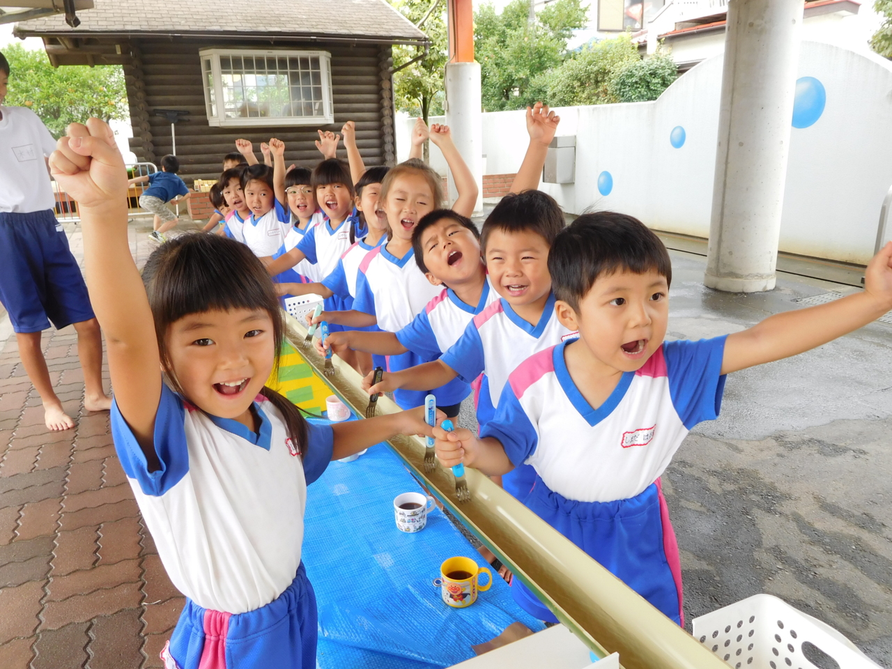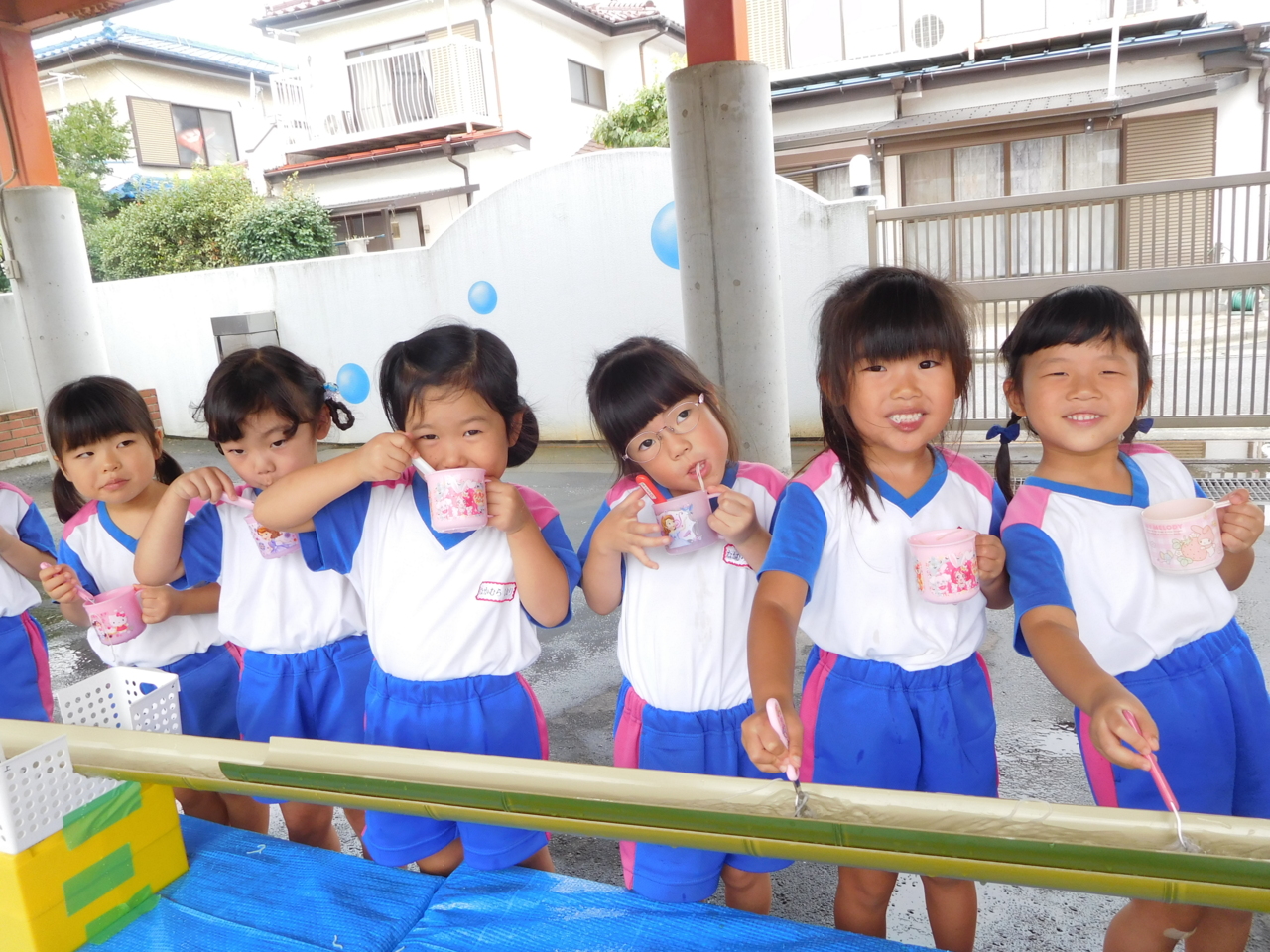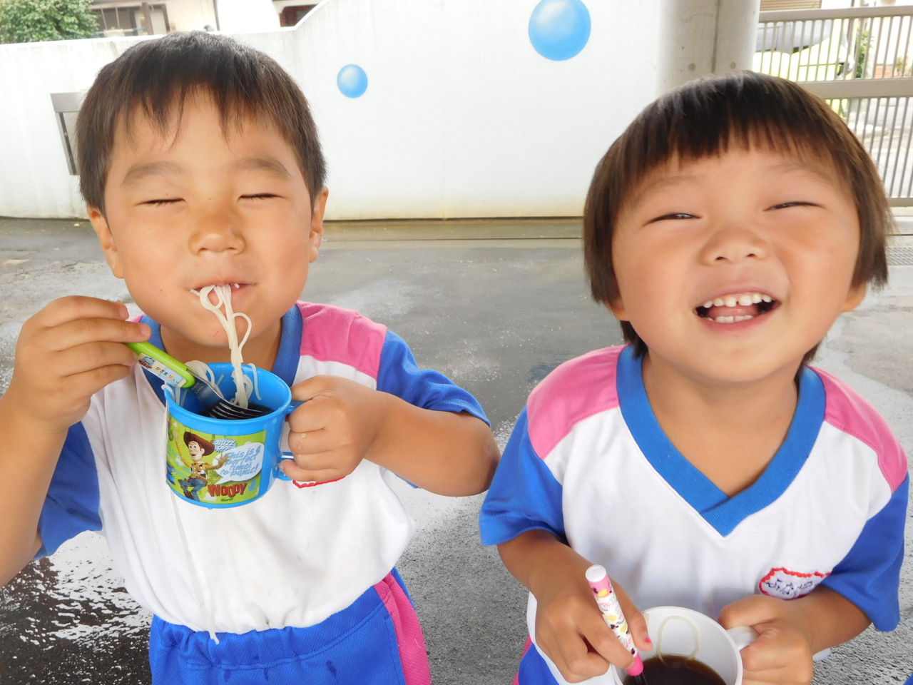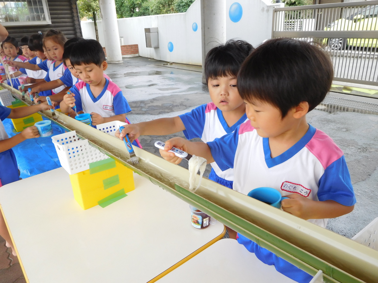 夏休みのお楽しみ第2弾は、流しそうめん大会! 朝からウキウキワクワクの子どもたちでした☆