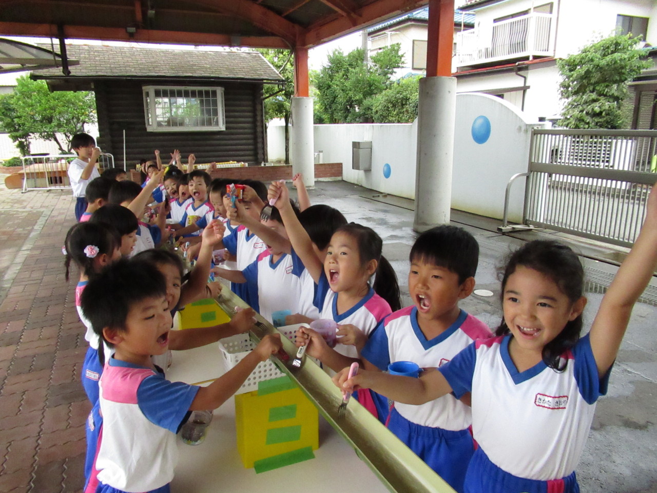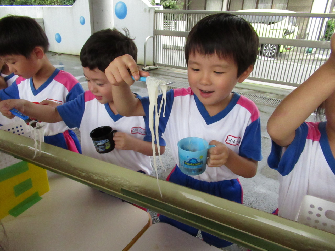 今日は流しそうめんのお楽しみです♪ 「いっぱいたべるぞー!」