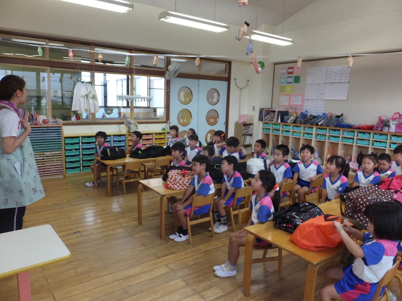 先生から今日のお楽しみの話しをしっかり聞くひまわり組さん。
