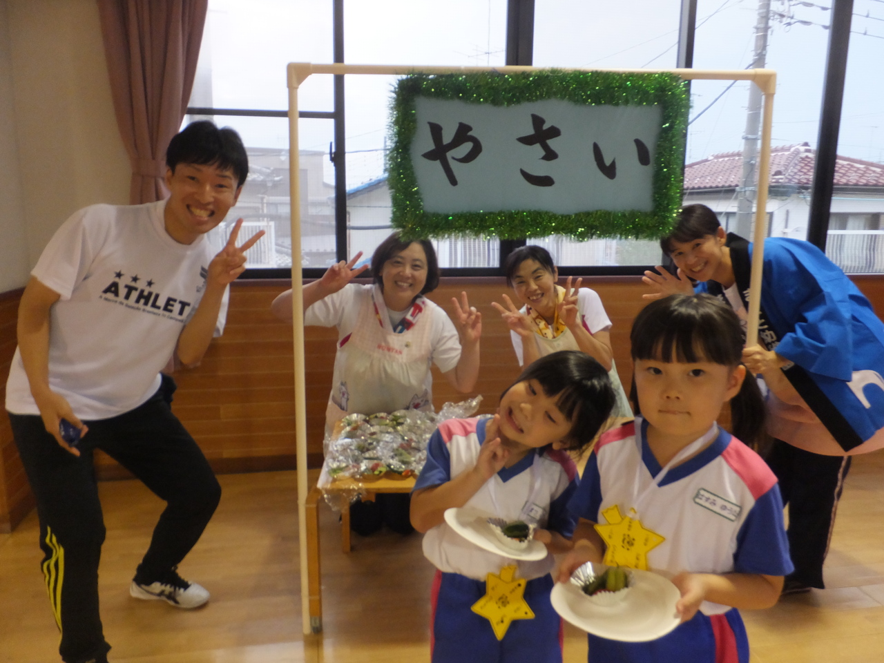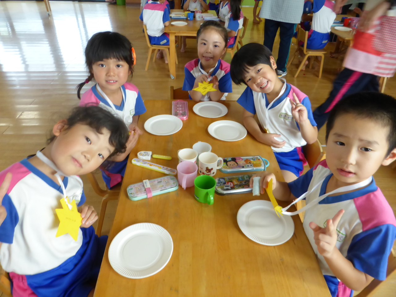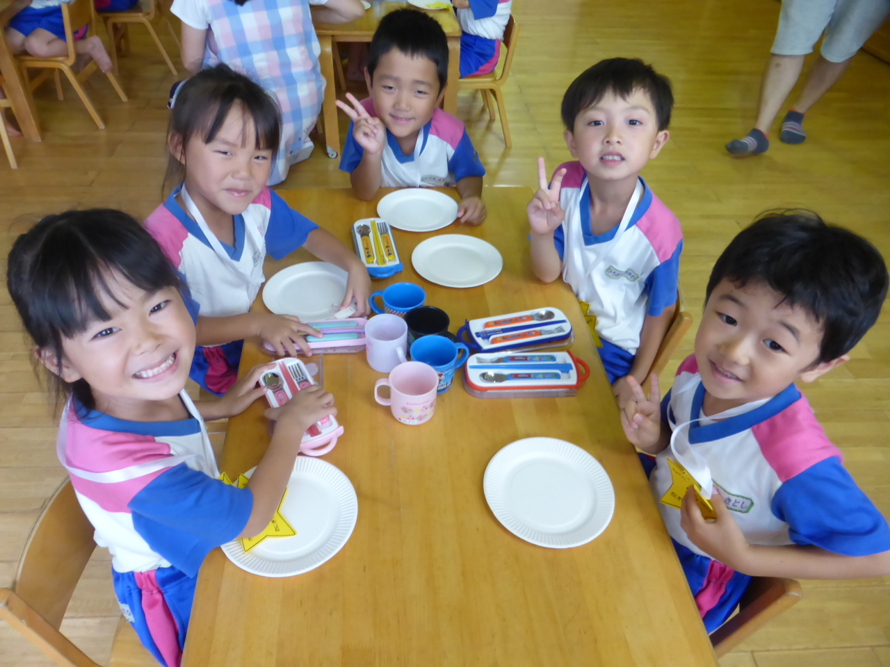 作ってくれた先生といっしょに 「はい、チーズ」 おかわりもたくさん食べました。