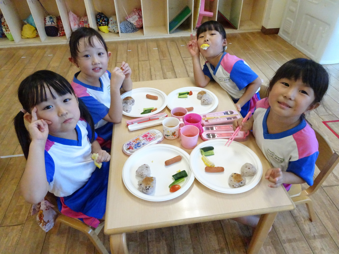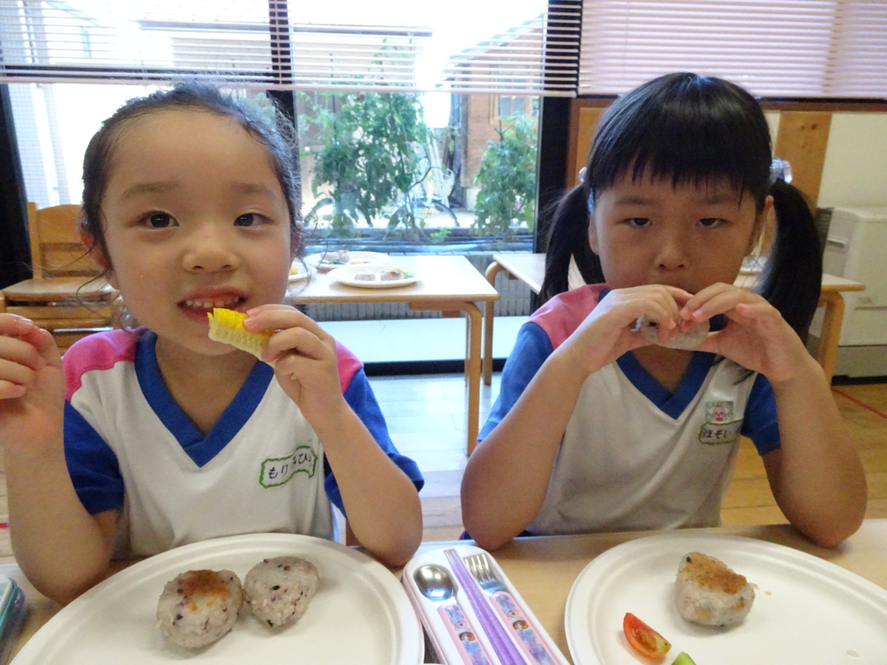 「おいしい~(*^_^*)」 おにぎりのおかわりもして、お腹いっぱい食べました。
