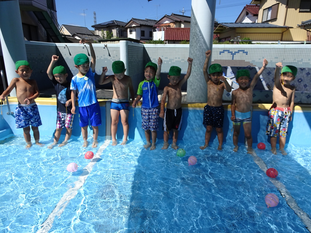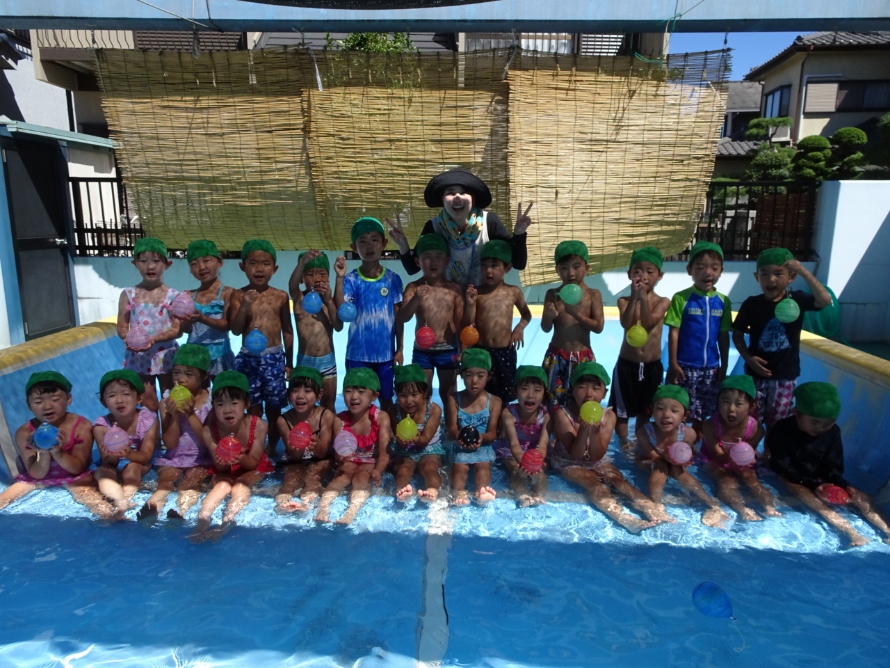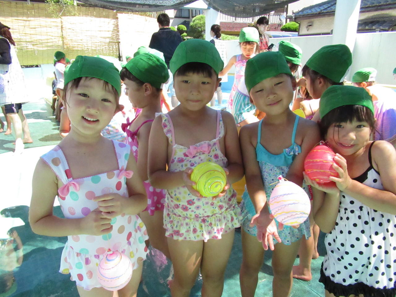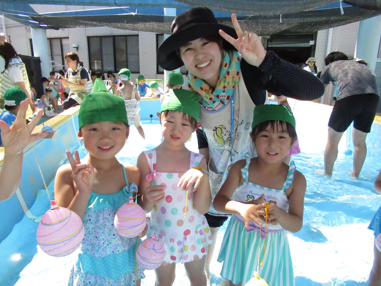 「すみれぐみ、いえ~い!!」 好きな色のヨーヨーを釣ったすみれ組さん、最高の笑顔でした☆