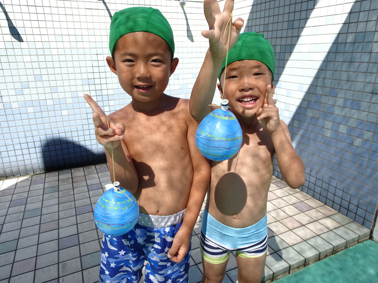 次は誰かな? 「ぼくたち、みずいろ~!!」 お揃いのヨーヨーでご機嫌(^o^)