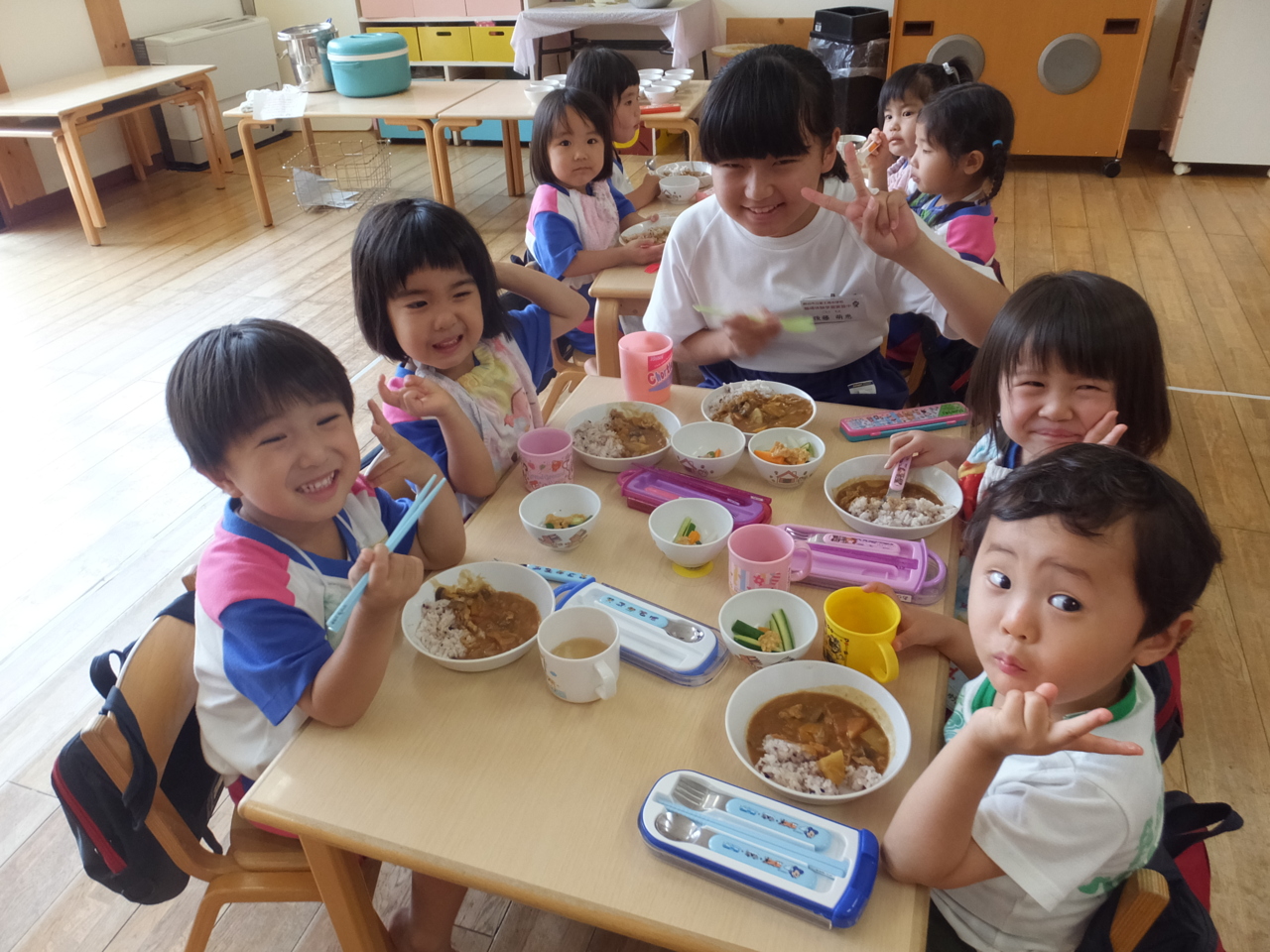 夏季保育でボランティアにきてくれたお姉さん♪ 「おねえさん、ここきて~!」 お話したり、一緒に遊んだり、楽しかったですね(*^_^*)