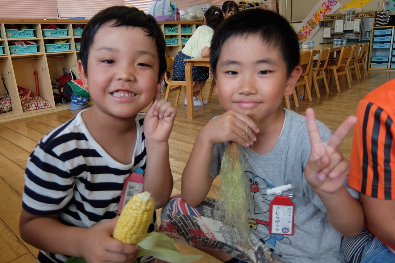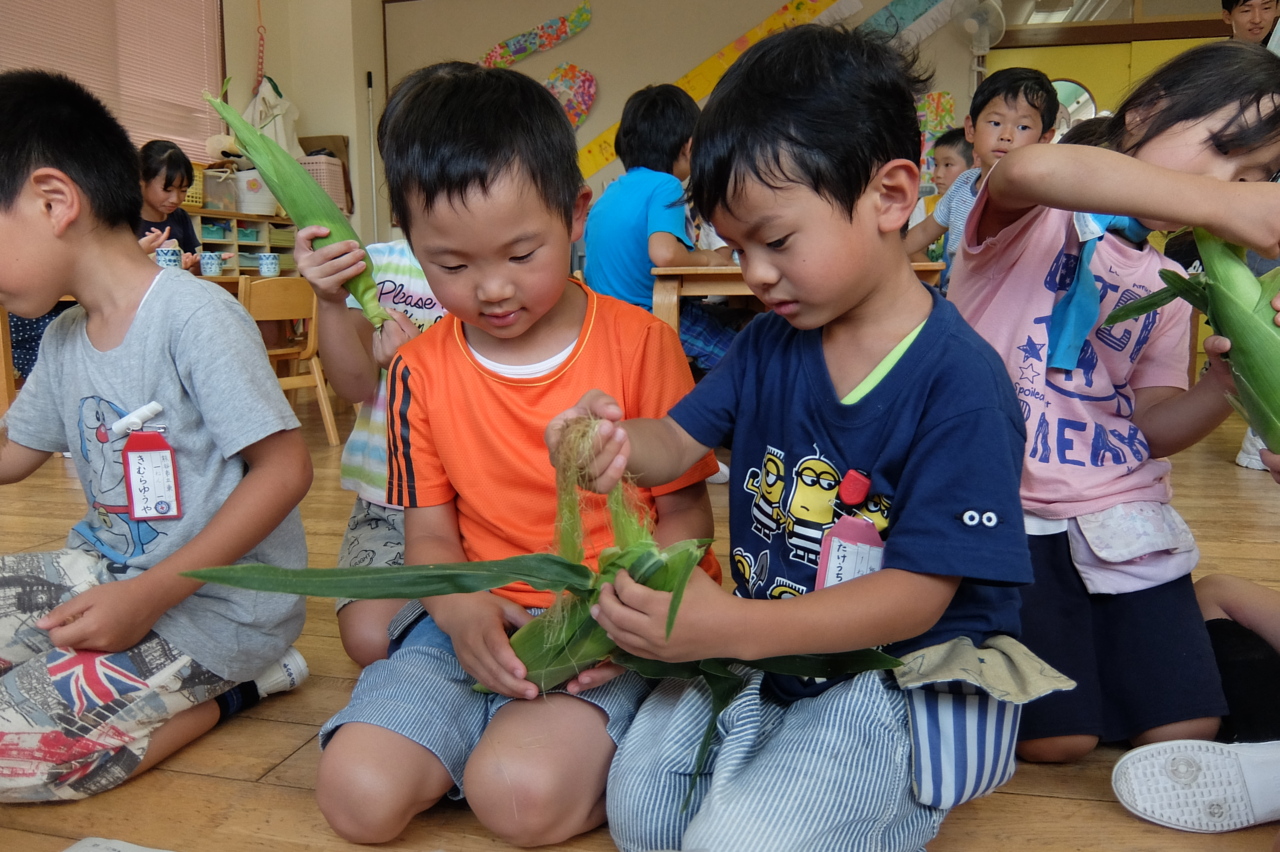 4月に蒔いたトウモロコシがまことファームで立派に実りました。 さあ!皮をむいて・・・