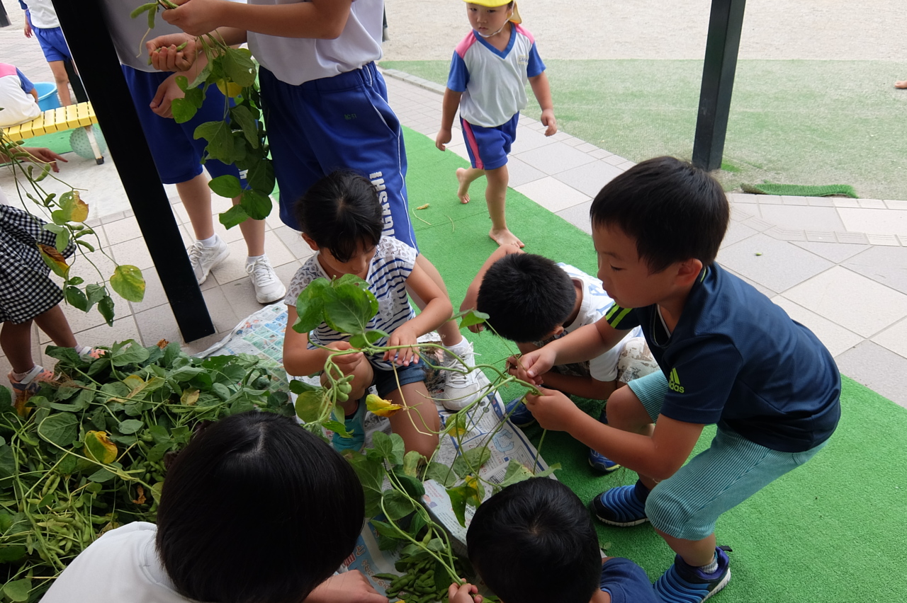 こちらは、枝豆です。 まことファームには、夏の野菜が沢山実り、学童の子供達は、毎日新鮮な野菜をおやつでいただきました。