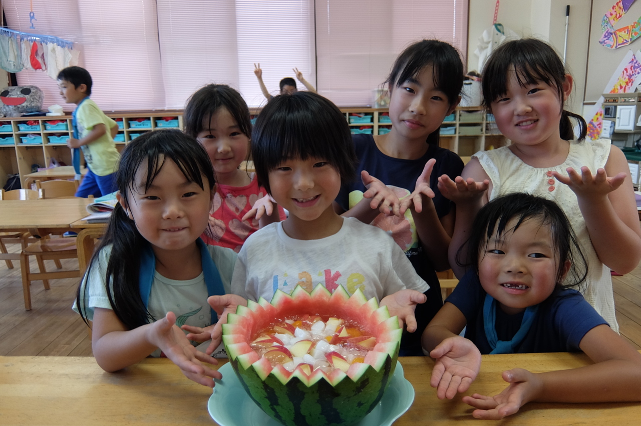 「すてきでしょう☆」 スイカはフルーツポンチにしました。