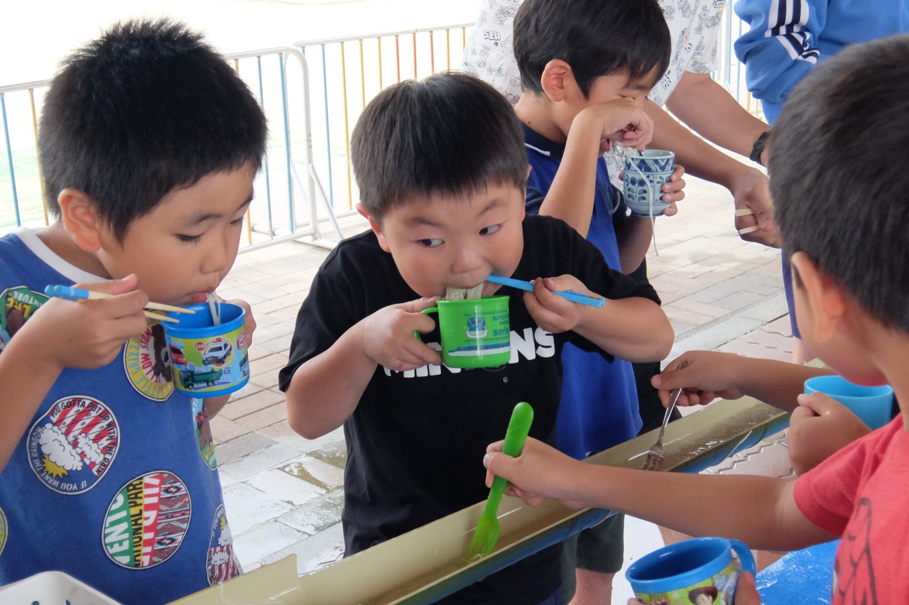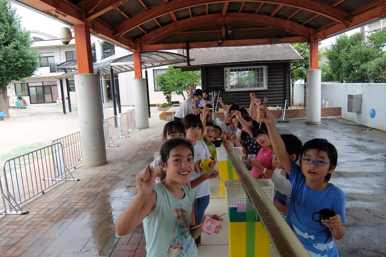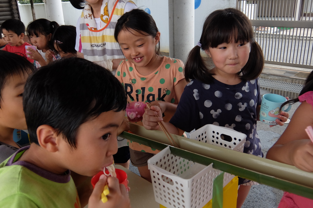 夏のお楽しみといったら! 流しそうめん!! 「たくさんたべるぞー!!!」
