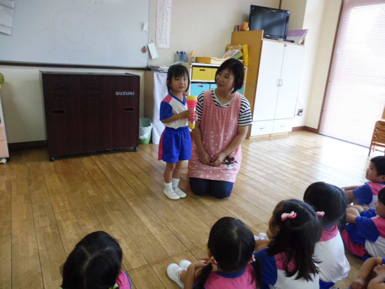 ☆生活発表☆ 一人ずつ前に出て、夏休みの楽しかった出来事を発表しました。ちょっぴり緊張していたようですが、みんな上手に発表できました(^v^) 何を話したかは・・・お楽しみに♪