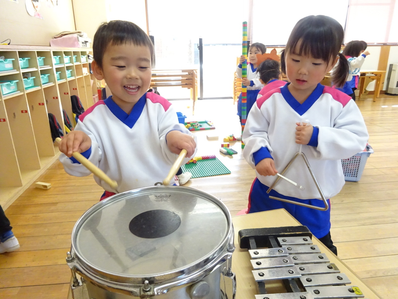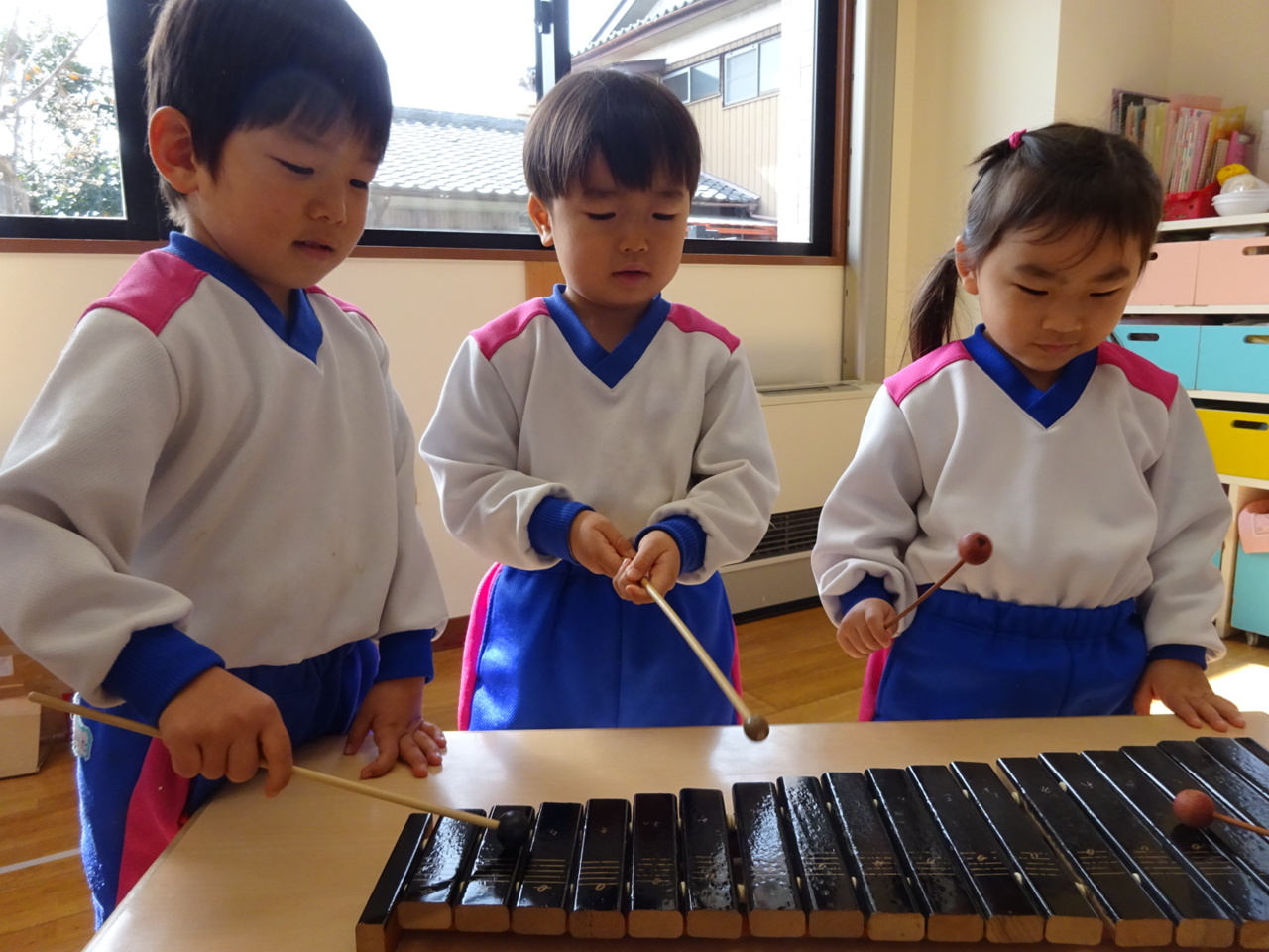 楽器を使って遊びました♪ この木琴は、担任が小学生の頃使っていたものです。 子どもたちが、こんなに楽しんでくれて嬉しいです(≧∇≦)