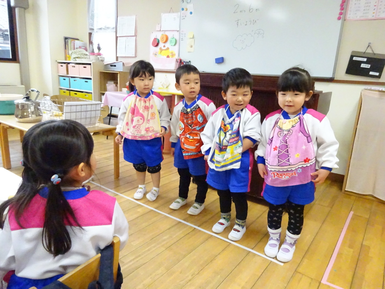お当番さんの時には、自分のお名前を大きな声で発表してくれます。自分の番がくるまでドキドキです(^_^)