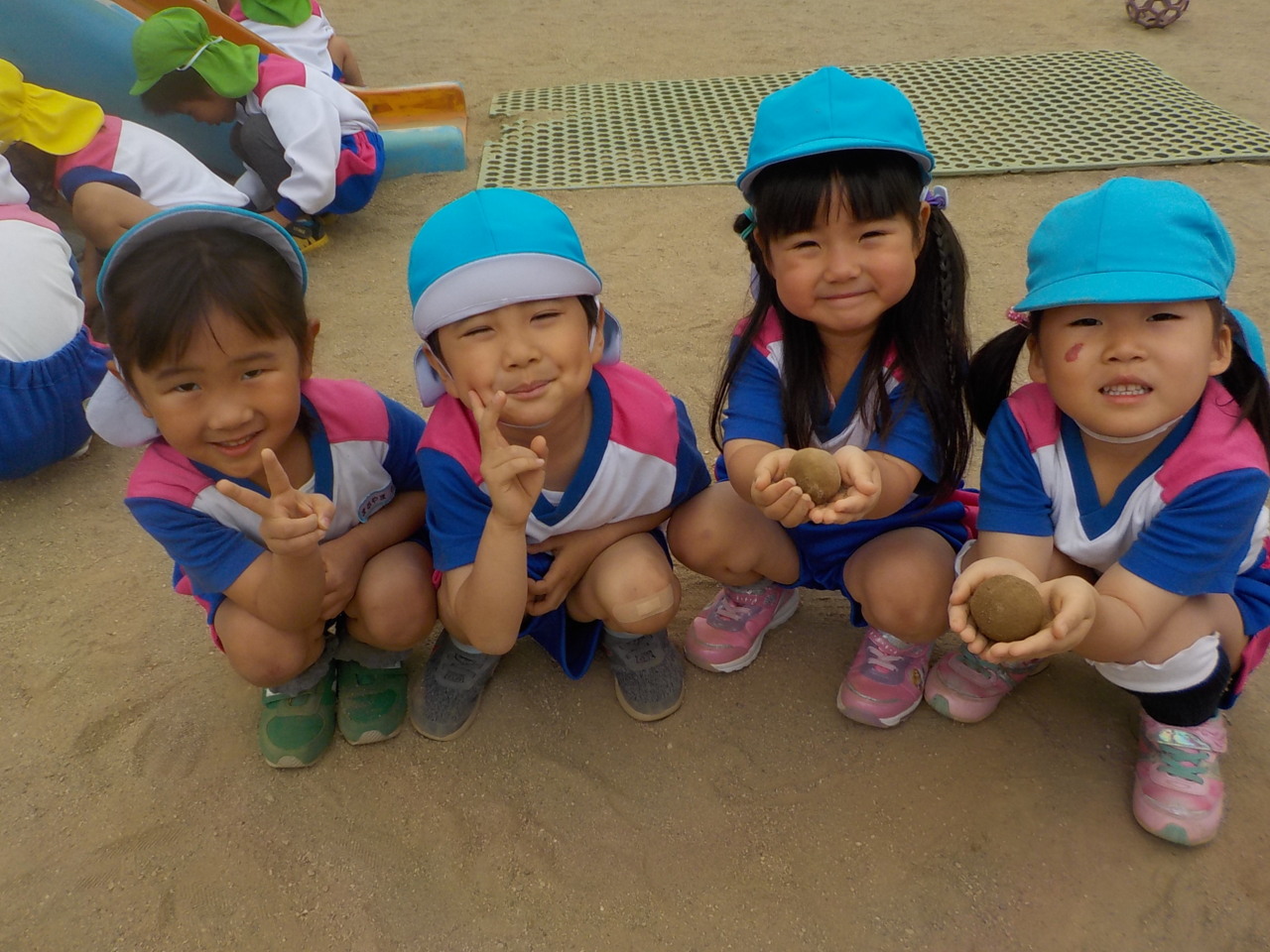 みんなで協力して砂をかけたり、磨いたりして、ピカピカのお団子ができました☆