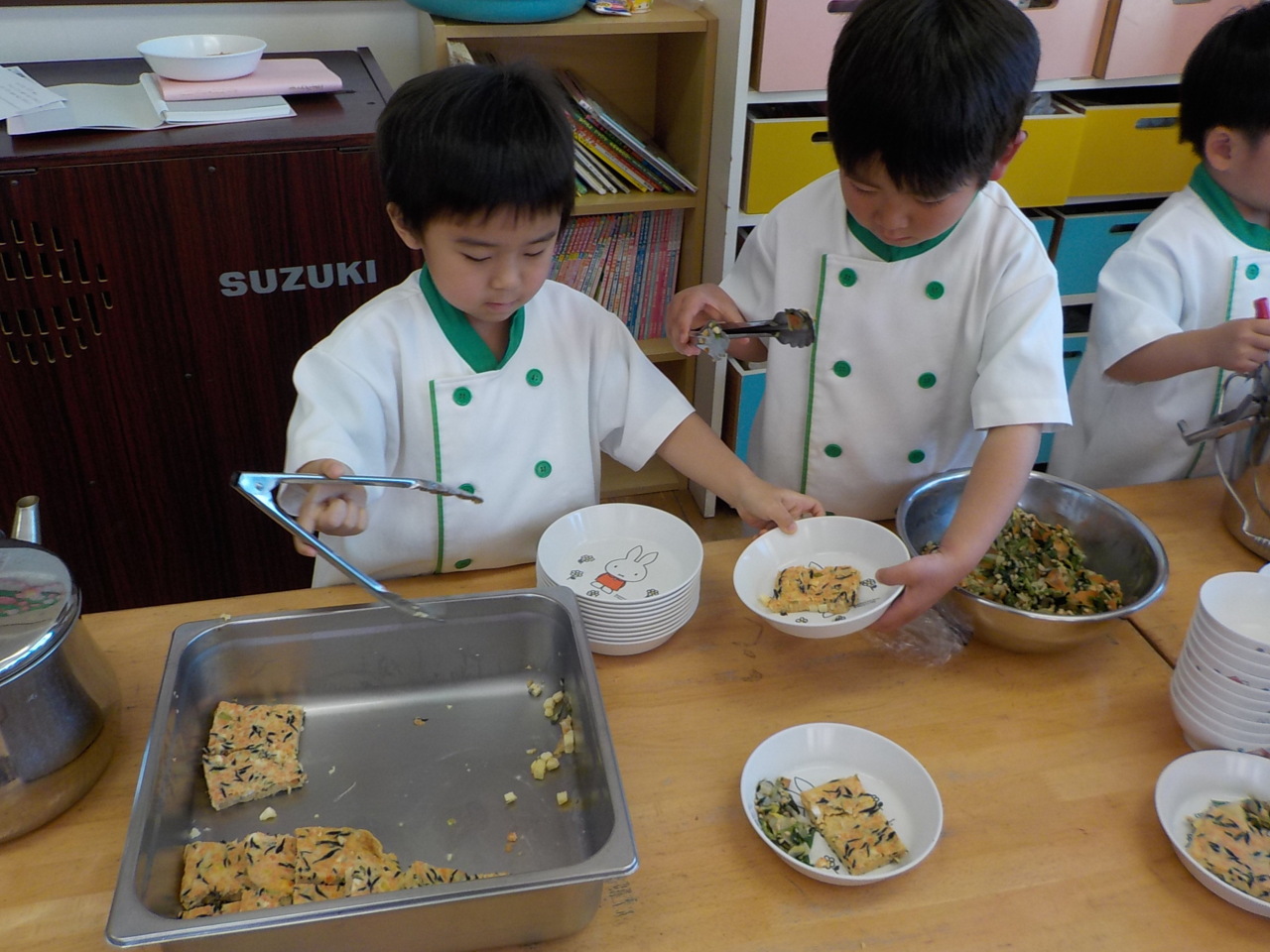 年中さんのお当番さんはカッコいいエプロンをつけます(*^▽^*)