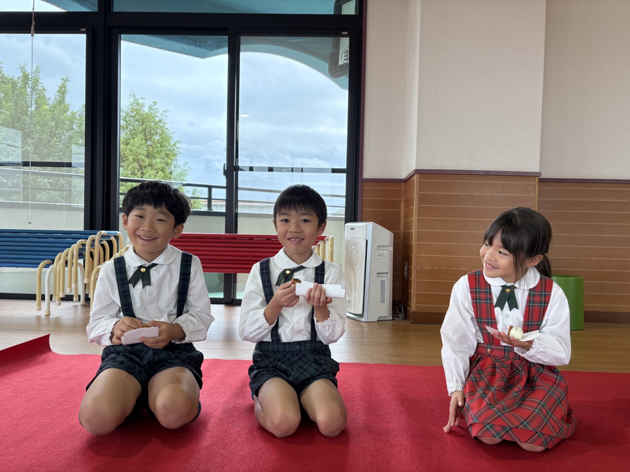 ☆年長さんが収穫したお米でおにぎりパーティーを行います☆