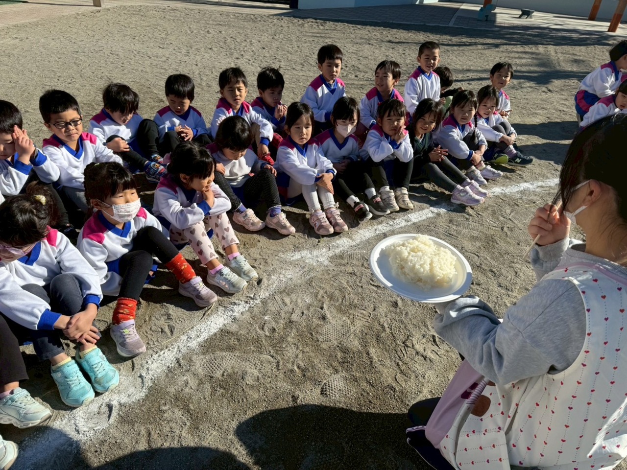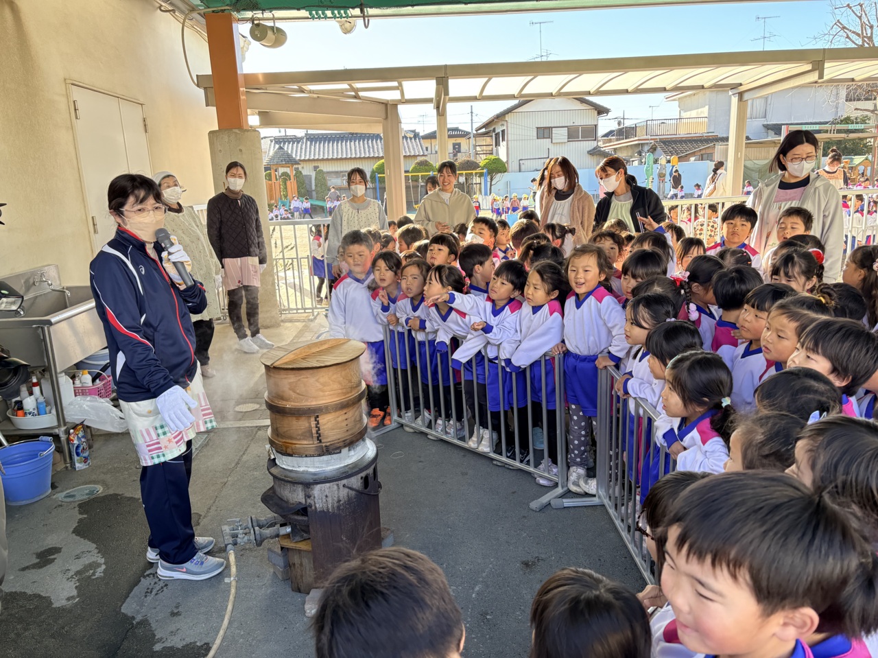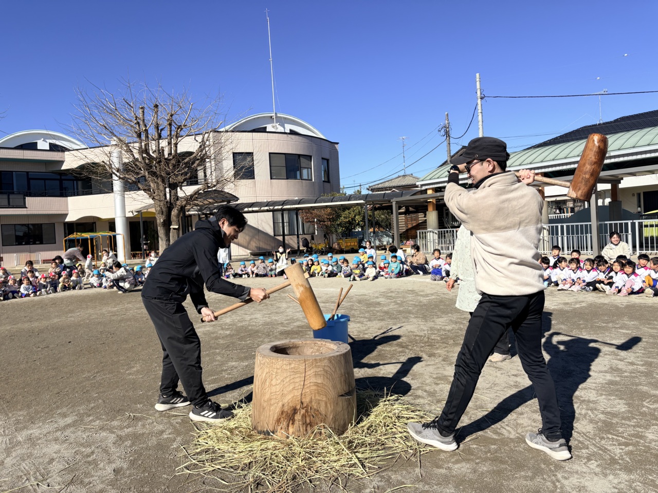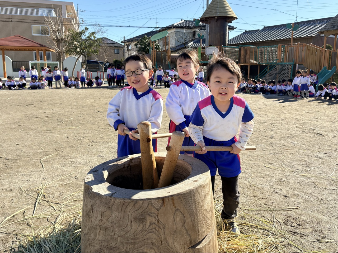 年長さん・先生たちがおもちをついている時は、「よいしょー!」と元気な掛け声で応援をしました☆